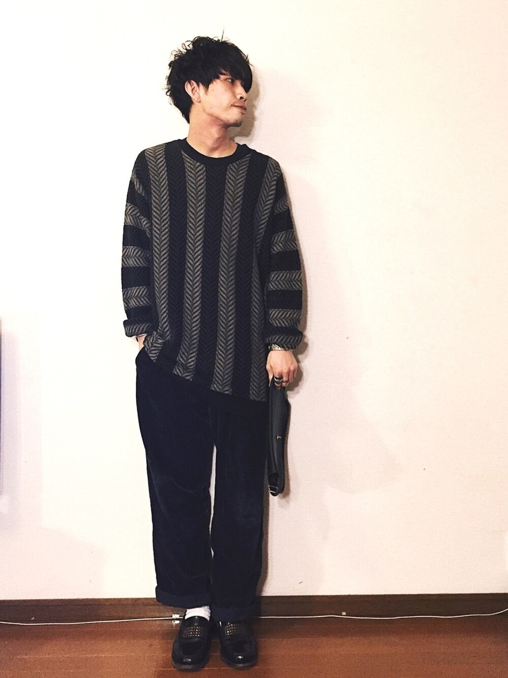 もう1コーデ! ビッグシルエットのコットンニットセーター、若い子がよくこういうの着てるなぁとは思いつつ春に向けて買ってみました 楽だしチクチクしないし使い勝手が良さそう。スキニーは似合わないのでゆるいコーデュロイと。