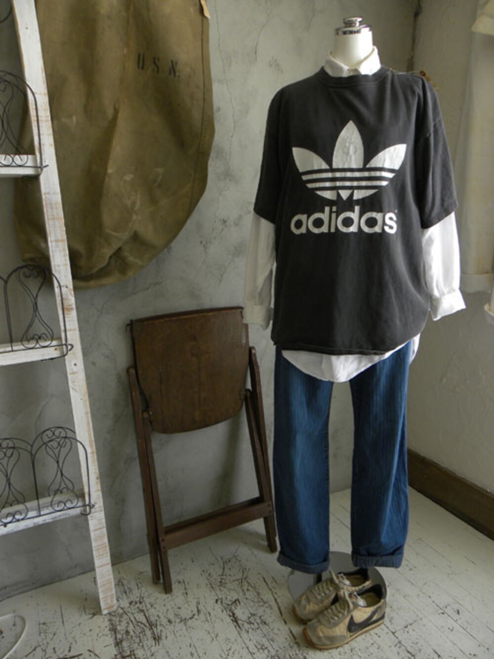 80's OLD ADIDAS WHITE B.D SHIRT 80's DENIM PANTS