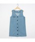 すっきりと開いたVネックラインが デコルテをきれいに見せてくれるワンピースです。 フロントに施したボタンディテールが 今季らしいワンピースデザイン! ネックラインやワンピース全体のスリム感が フェミニンな雰囲気。 定番人気のデニムワンピースでデイリーに活躍の予感。