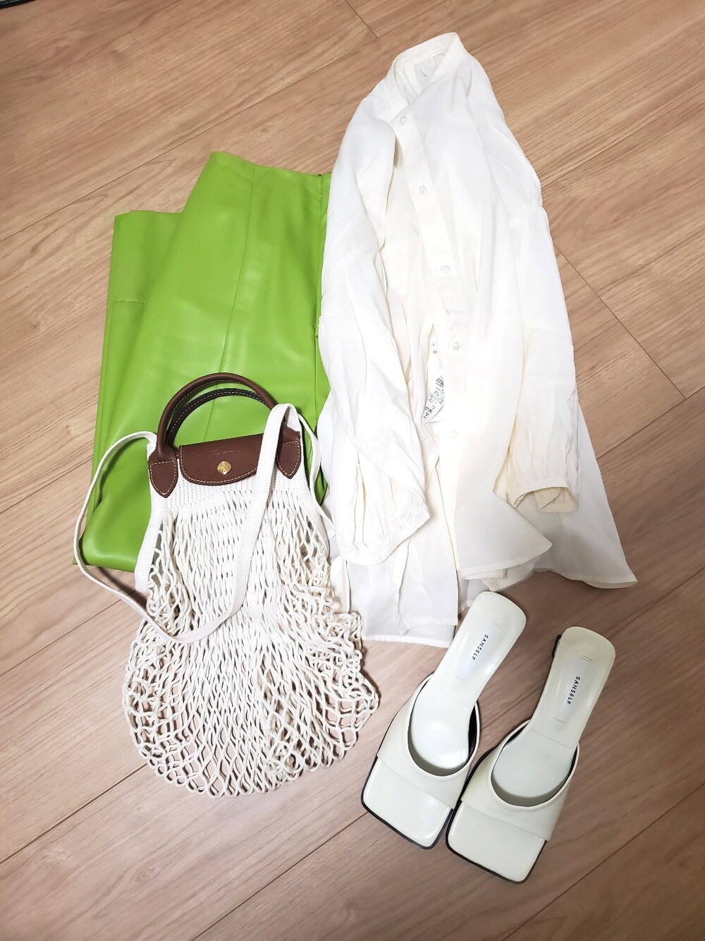 oreoのハンドバッグ「LONGCHAMP LE PLIAGE FILET ロンシャン ル プリアージュ フィレ ネット ハンドバッグ」を使ったコーディネート