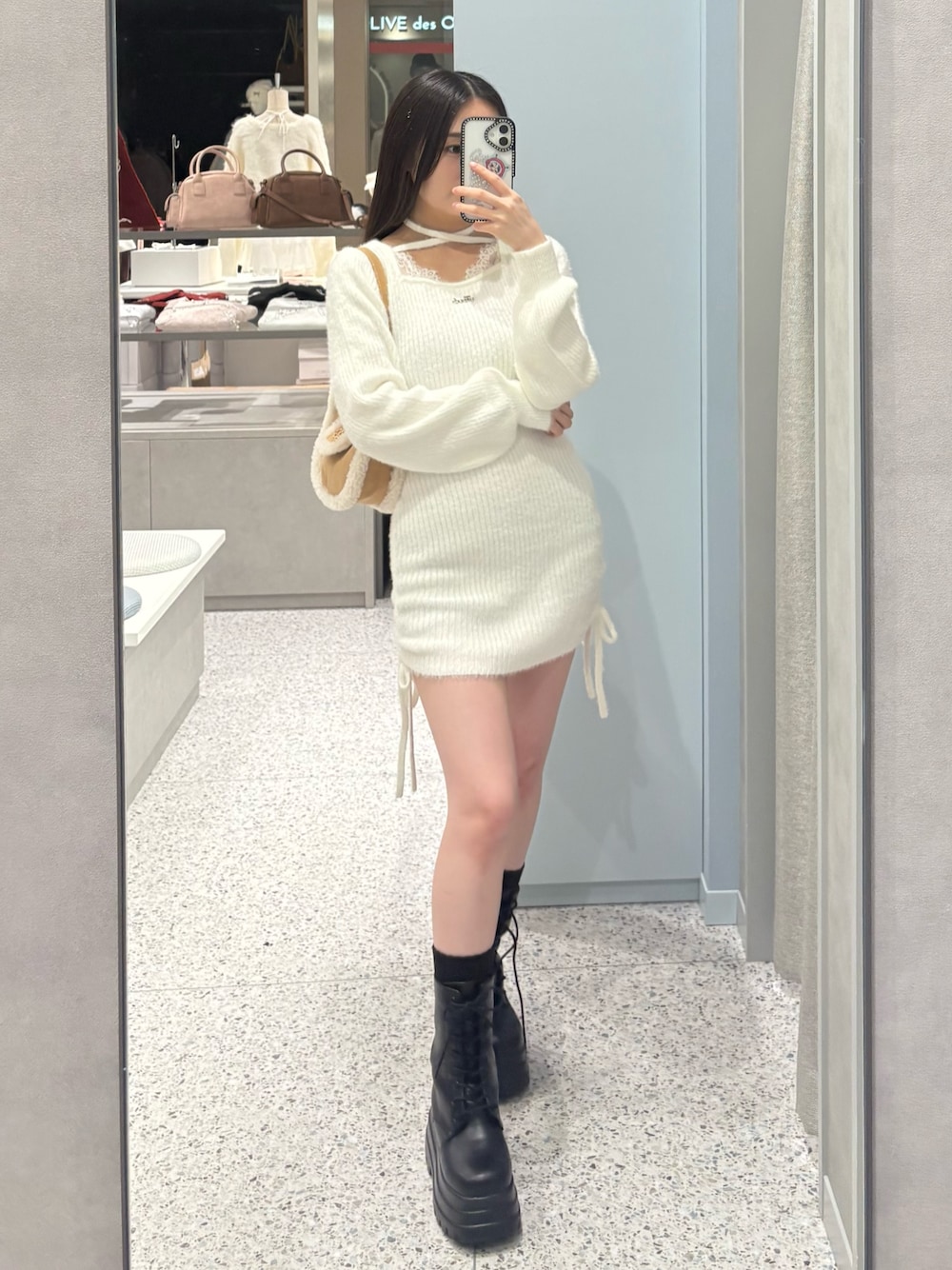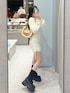 yu22olive(OLIVE des OLIVE 名古屋パルコ)のワンピース「【インフルエンサー企画】Keru レーストリムドロストミニワンピ」を使ったコーディネート