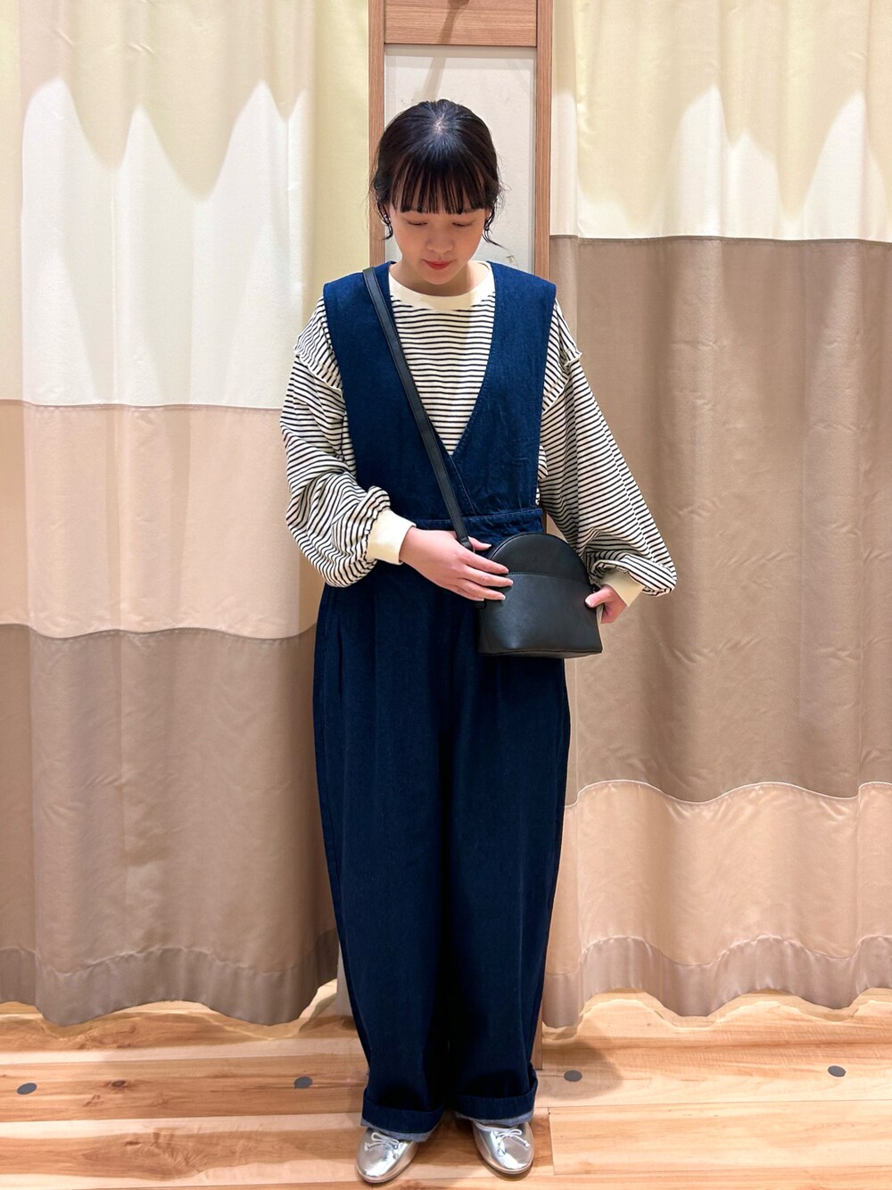 ご覧いただきありがとうございます🌸 ボーダー×デニムのシンプルコーデ👖 シンプルですが、サロペットの後ろのデザインがまた可愛いんです🫶🏻 店頭はMサイズのみ、オンラインショップでは Sサイズもご用意しております☺︎ ぜひご覧ください💁🏻♀️