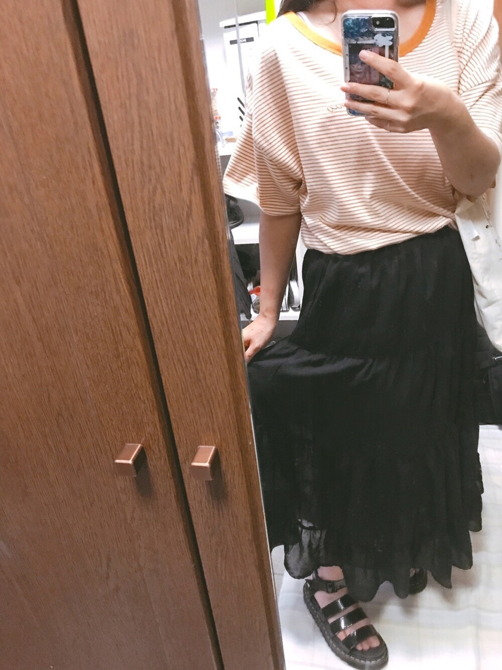 えむのTシャツ/カットソー「ボーダー刺繍入りTシャツ 〇*」を使ったコーディネート
