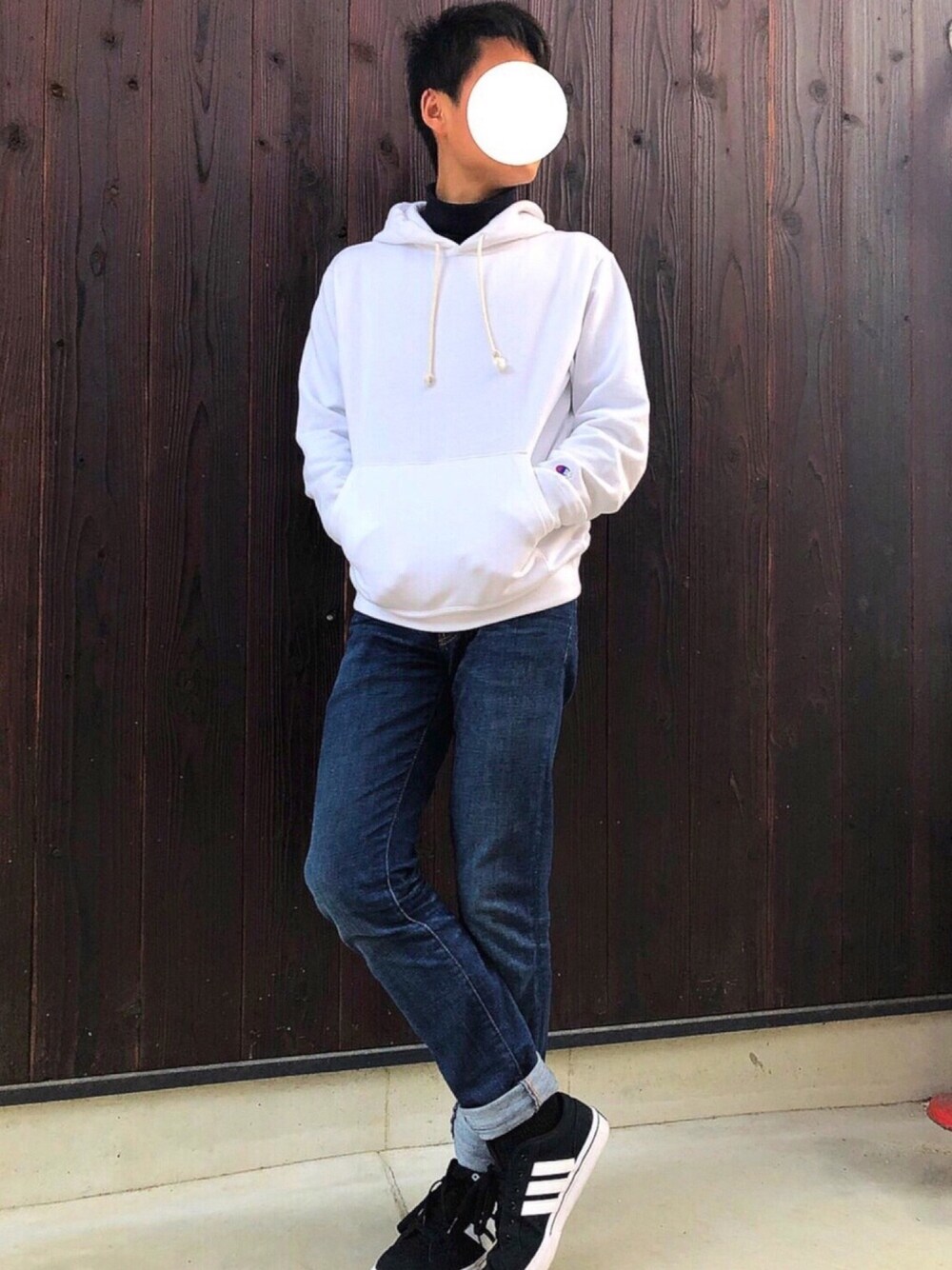 今日からwearでコーディネートを投稿していきたいと思いますのでたくさんの方に参考になってもらえるよう頑張っていきたいと思います😄 [今日のコーディネート] 記念すべき1回目はパーカーコーデです😎 最近暖かくなってきたので春っぽい服装にしました🌸 ラフな格好でのお出掛けにいかがでしょうか😄 ひと工夫として紺色のタートルネックTの上にパーカーを重ね着しています。 [size] パーカー L タートルネックT L スニーカー 26.5cm