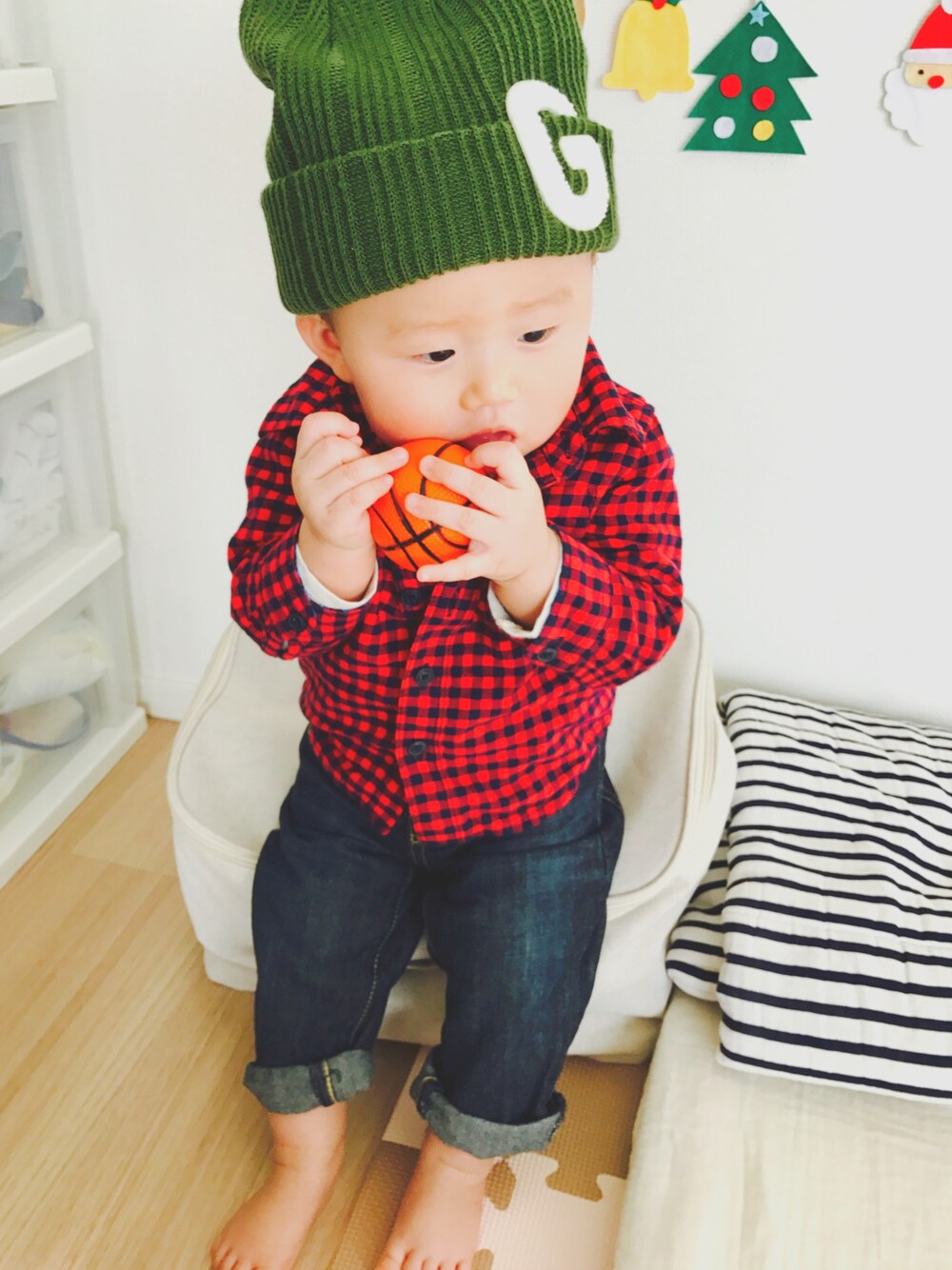 昨日赤ちゃん本舗行ったら息子のイニシャルニット帽が売ってて衝動買い😅 おかげで今日はクリスマスカラー🎄になってしまった🤣