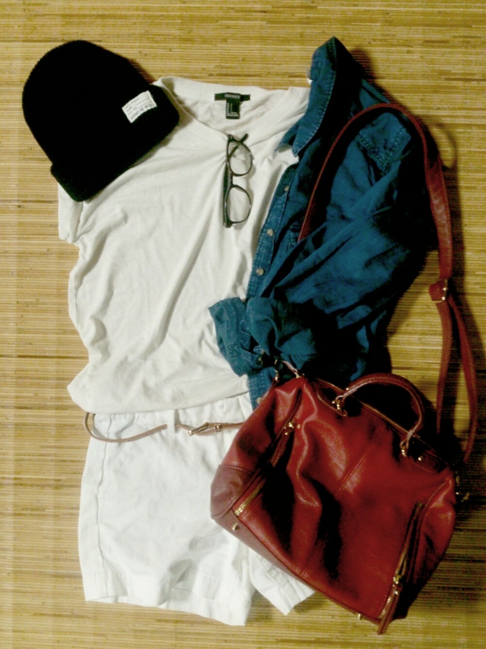 Tシャツ forever21 デニムシャツ H&M パンツ UNIQLO ベルト Urban Reseach DOORS ニットキャップ Urban Reseach バッグ beauty&youth ダテメガネ snidel 白×白は、ちょっと勇気が要りますね… 町には半袖の人も多いですが、自分はクーラー苦手なんでまだまだ羽織が必要です~