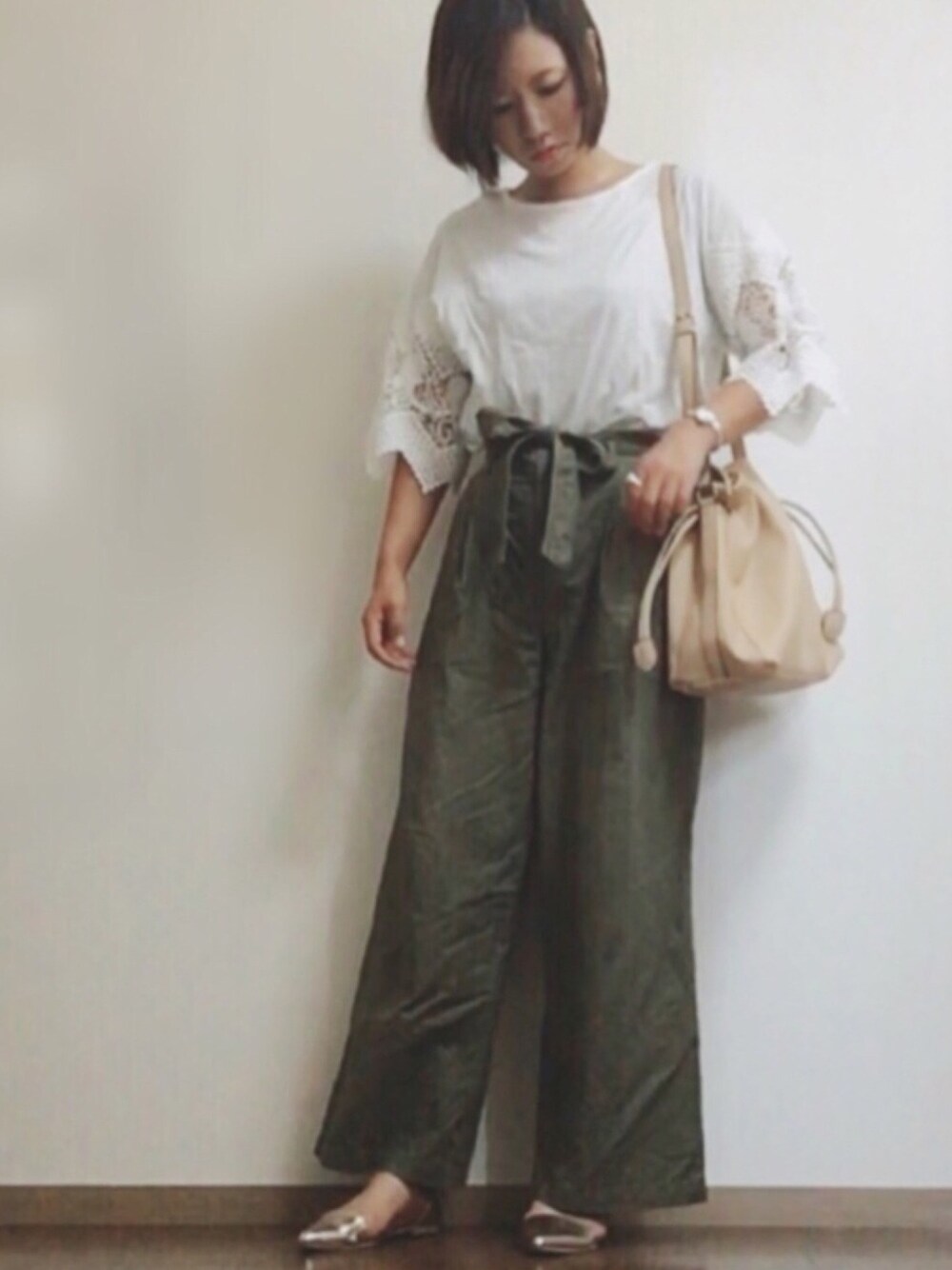 レーススリーブが女性らしくてお気に入り ╰(*´︶`*)╯♡ UNIQLOのリネンパンツも大活躍🏃♀️