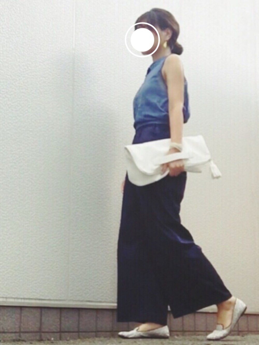 背中パックリブラウス×ワイドパンツ ♩ イエローのフリンジピアスをアクセントに⭐️