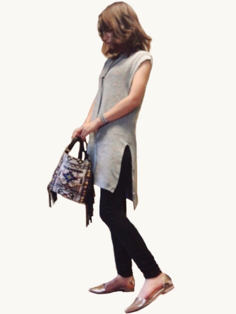 mameのニット/セーター「5ゲージアゼロングベスト 717168」を使ったコーディネート