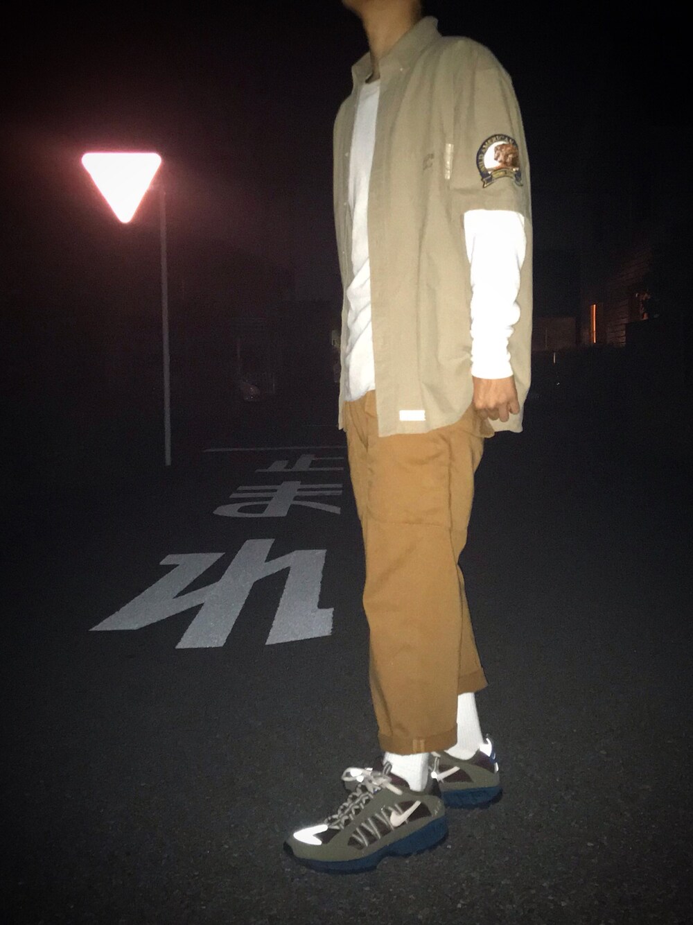 トップスのロンTワッフルなのが写真で伝わらないのが残念🙍♂️ 同系色でまとめてみました。 トップス ヘインズのロンT size L シャツ 親が着てた20年前のシャツ 結構いいやつらしい。 パンツ 5年くらい前に買ったけど気に入ってて捨てられないパンツ。 ブランドは確かラトルトラップ。 kicks ナイキ フマラ 2017 29cm
