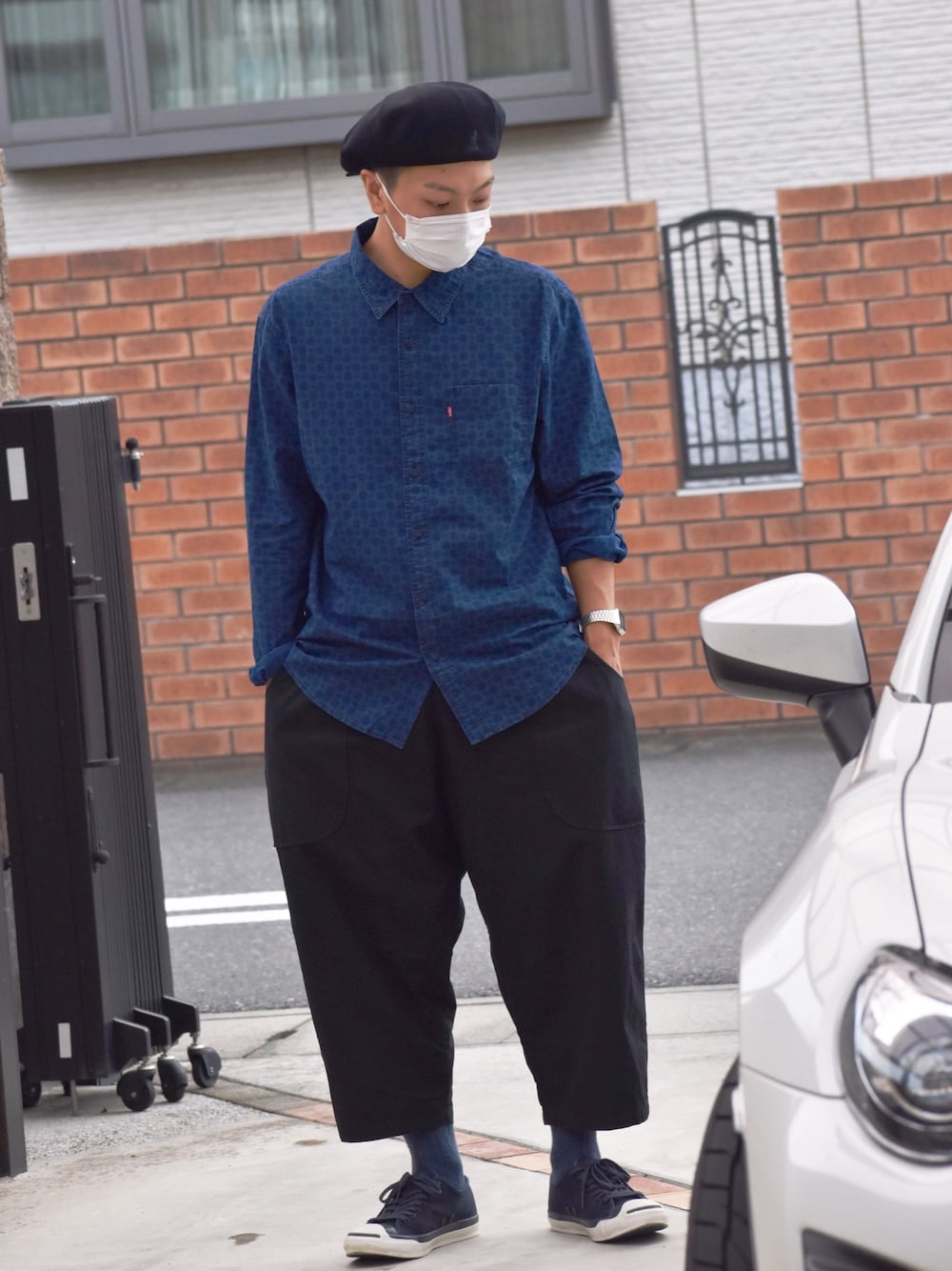 おまめくんのシャツ/ブラウス「SUNSET 1ポケットシャツ SLIM ASH INDIGO PRINT」を使ったコーディネート
