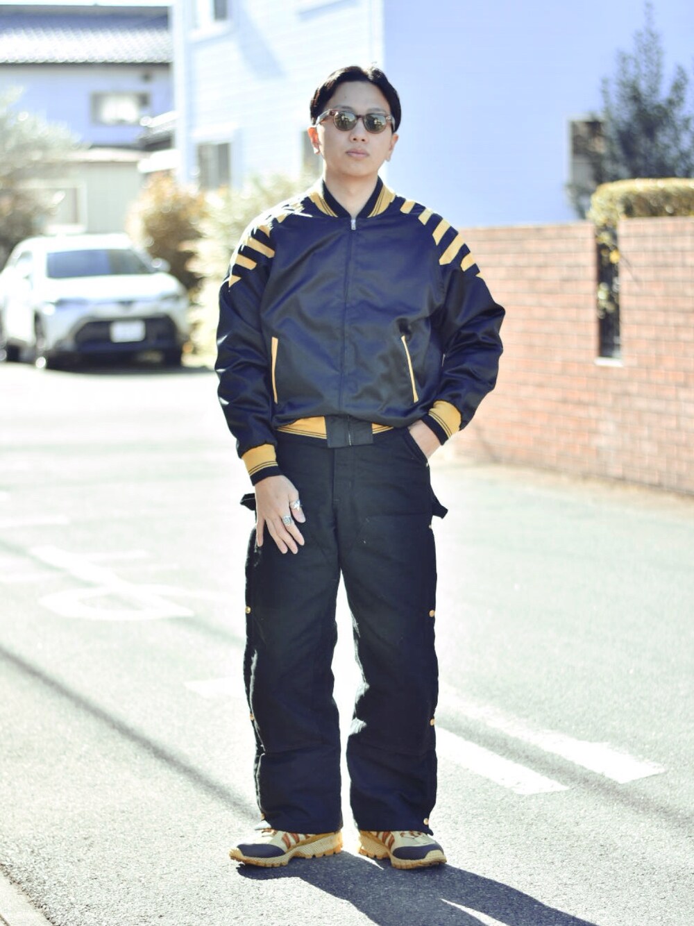 おまめくんのブルゾン「LEVI'S(R) VINTAGE CLOTHING ボンバージャケット STRIPED BLACK GOLD」を使ったコーディネート