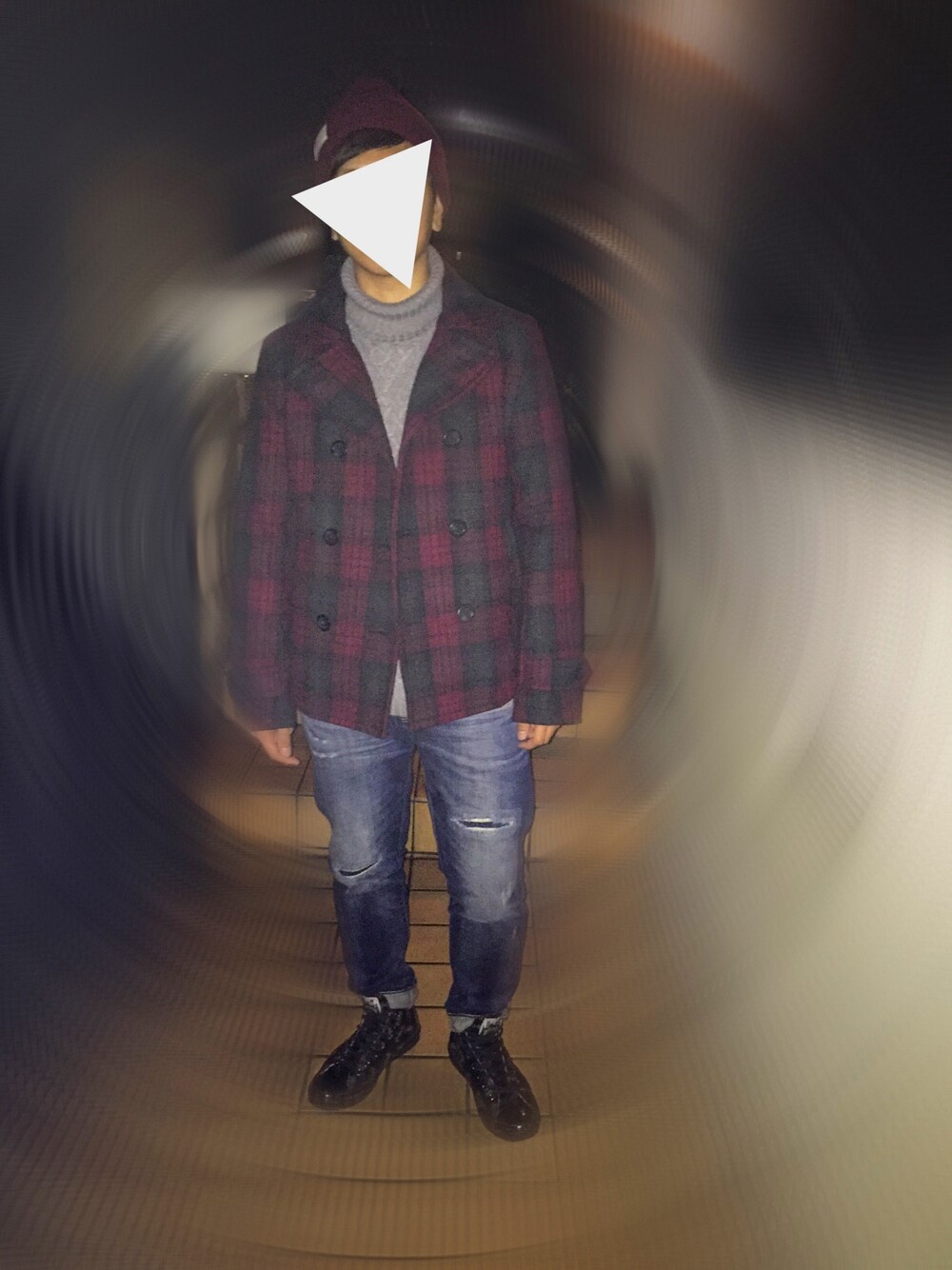 おまめくんのピーコート「チェックメルトンショートPコート」を使ったコーディネート