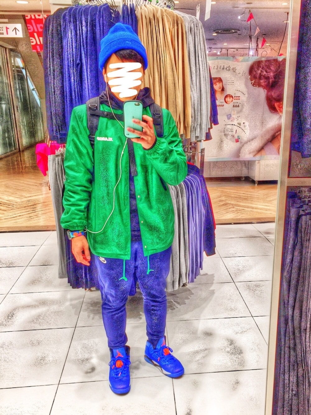 今日はスポーツミックスストリートです 宇都宮は少し雪が降ってます。寒いです❄️ 原色メインのコーディネートで、ど目立ち間違いなし!笑 ニット帽とkicksを青にすることでまとまりを出しました