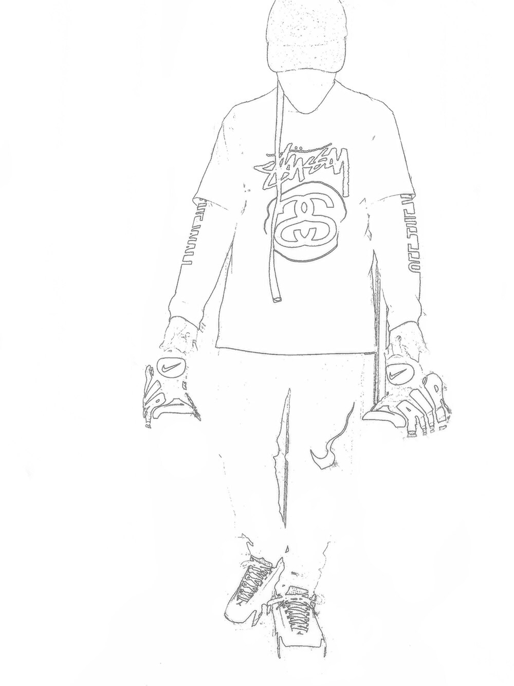 モノトーンのコーデなんですが、加工で文字と体のシルエットだけにしちゃいました笑 この加工気に入ってます スポーツミックスですが、韓国風ファッションみたい笑