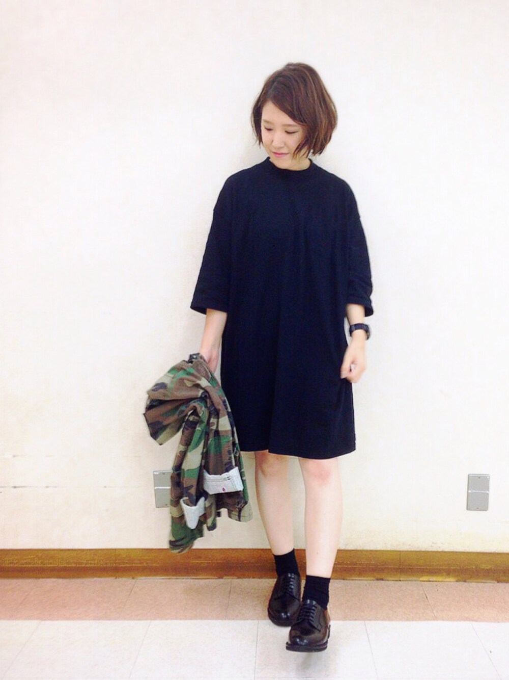 ずっと欲しかったBIGteeワンピ💕 2000円以下で買えて、丈も形も大満足🙋 オールブラックにカモフラでアクセント◎