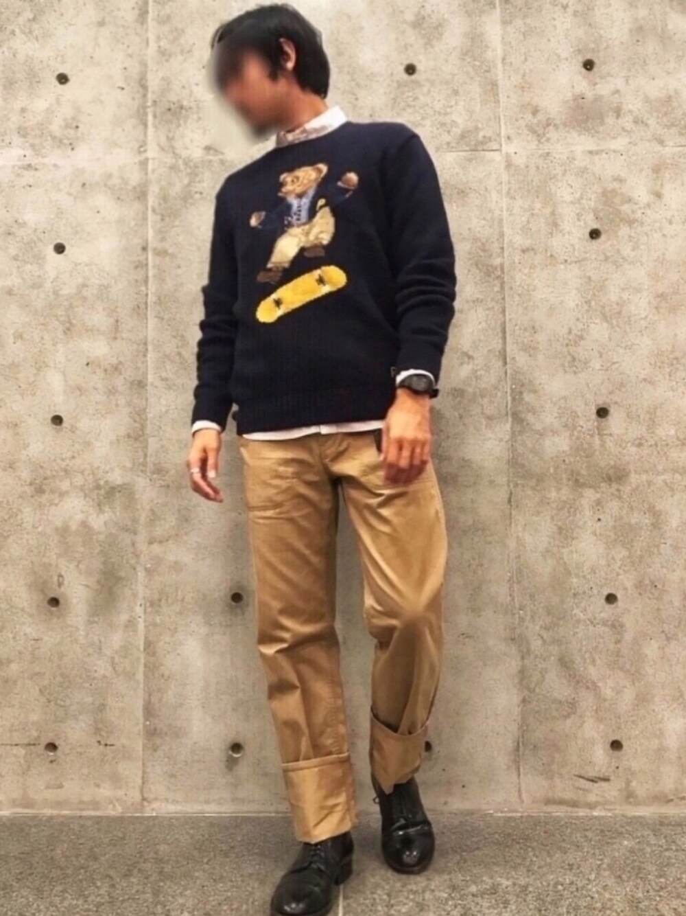ご覧いただきありがとうございます👨🏻 《🇺🇸プレッピー🇺🇸コーデ》 ■シャツ,ニットをラルフローレンで固めた裕福育ち風 ■インパクトかつ愛らしいPOLO BEARニットが主役 ■初代UNIQLO×JW ANDERSONコラボチノパン ■股上長め、ウエストにゆとりで美脚&快適 ■今年はコーディロイが出てるみたいなので、要チェック ■足もとは黒の革靴で締め ⚠️全く同じアイテムがなかったので、似寄りの物をタグ付けしてます。 --------------------------おまつとは... 太ももが太い事が悩み。 「同じ悩みを持った方々の少しでも役に立てば良いな...」と思い、 定番パンツの[スラックス]と[チノパン]と[デニム]の3本を着回してコーディネートを提案していきます。 -------------------------- インスタグラムもやっています! こちらもよろしくお願いします! 🌐Instagram→ @OMATSU528