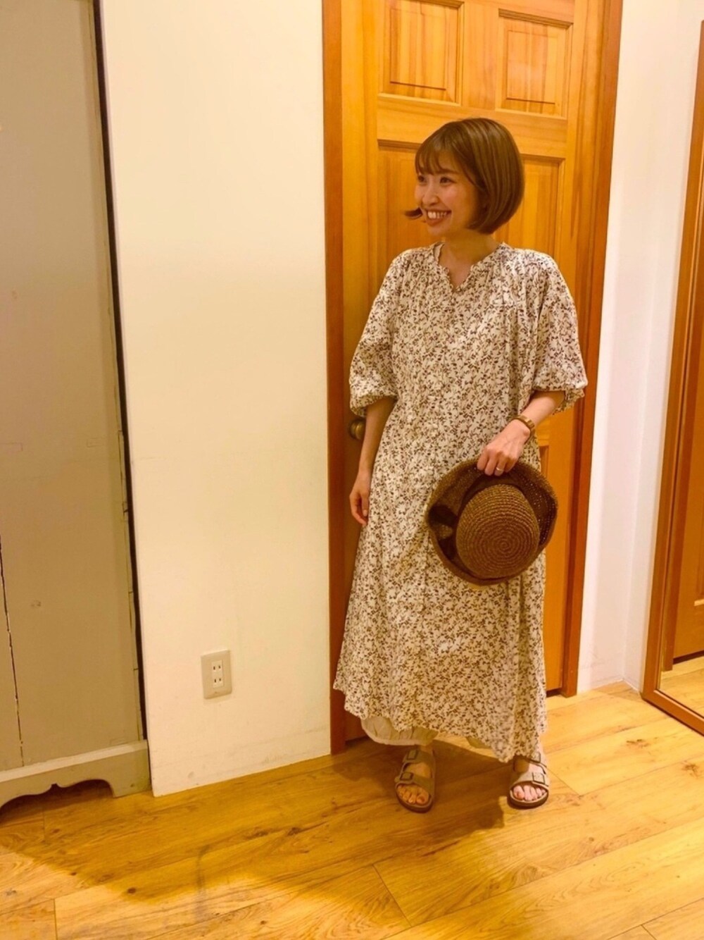 omatu3のワンピース「綿レーヨン花プリントワンピース」を使ったコーディネート