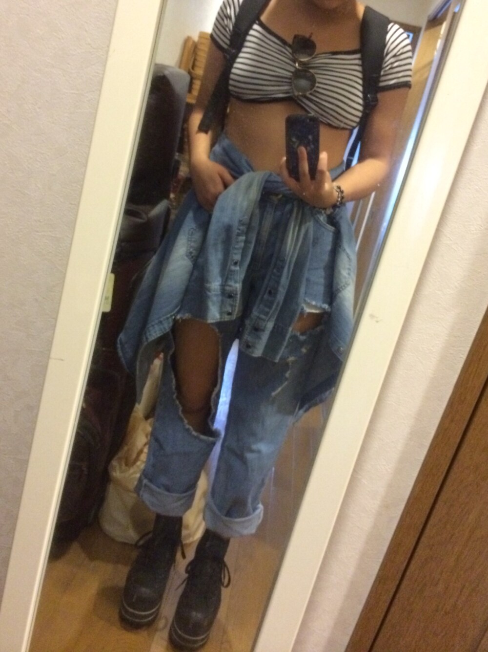 トップス:Forever21 ボトムス:CICAGO 腰に巻いたシャツ:WWL お腹出し過ぎコーデでしたね