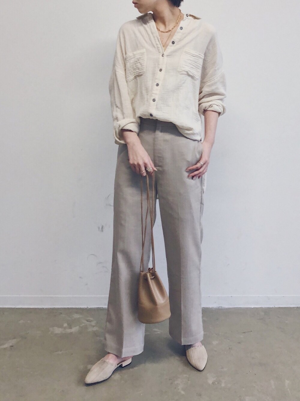 閲覧頂きありがとうございます♡ ガーゼシャツが再入荷したので 早速ゲットしました✨ 絶対夏まで愛用するから 前々から2色買いしたかったやつ! お気に入りのワイドパンツと合わせて ナチュラルカラーでコーディネート🌿
