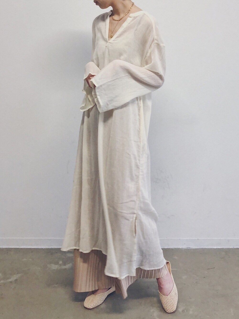 まっしーのワンピース「【Holiday】フレアスリーブシアーワンピース」を使ったコーディネート