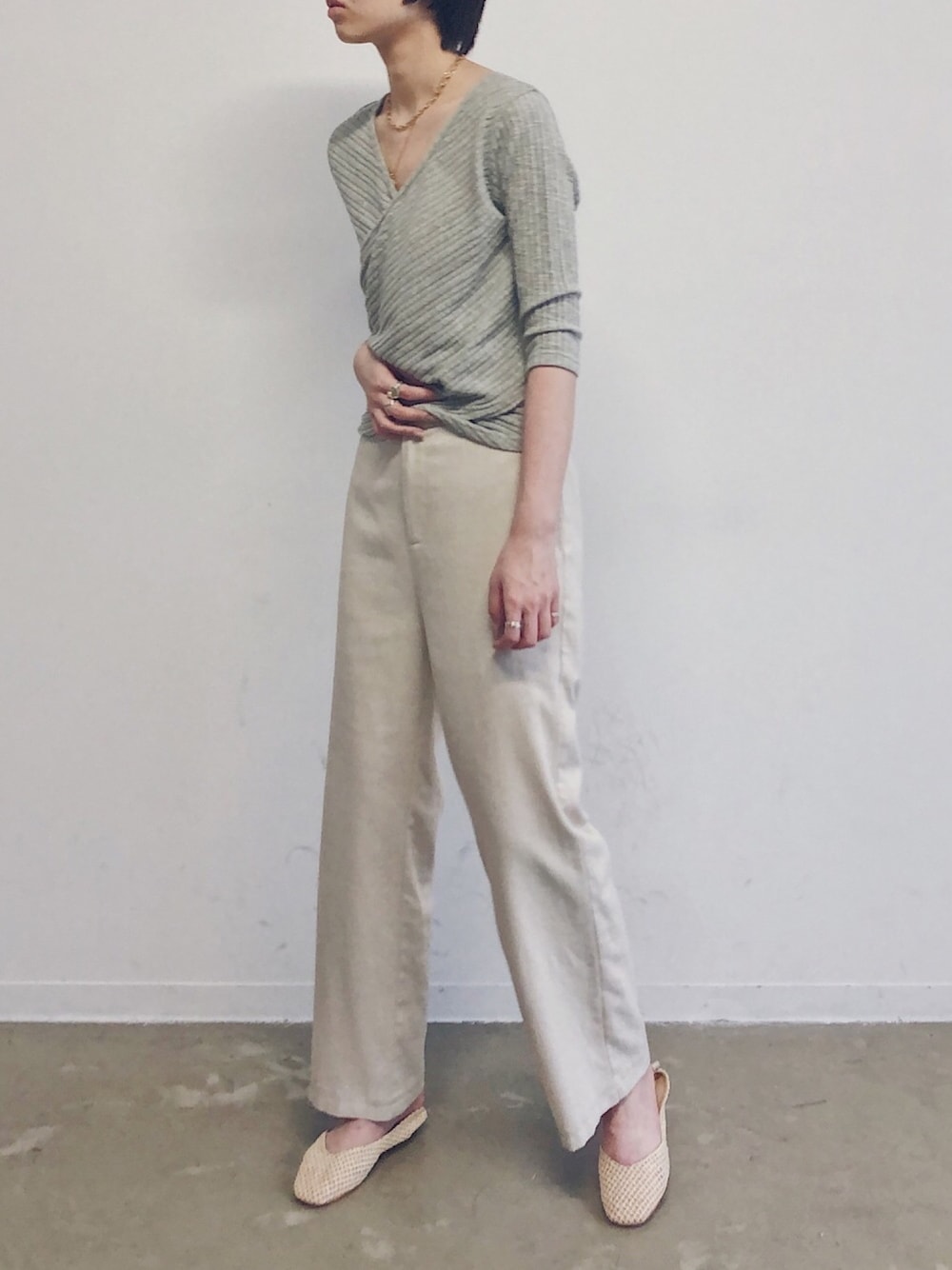 まっしーのTシャツ/カットソー「【Holiday】2WAY カシュクールスラブリブトップス」を使ったコーディネート