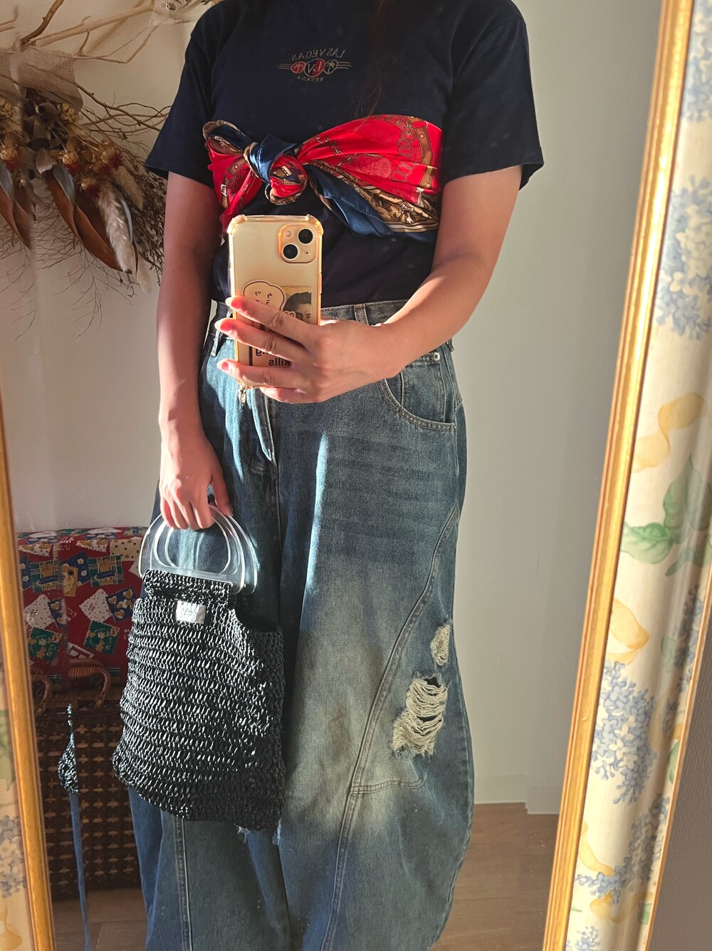 お気に入りのデニムにスカーフがワンポイント❤️