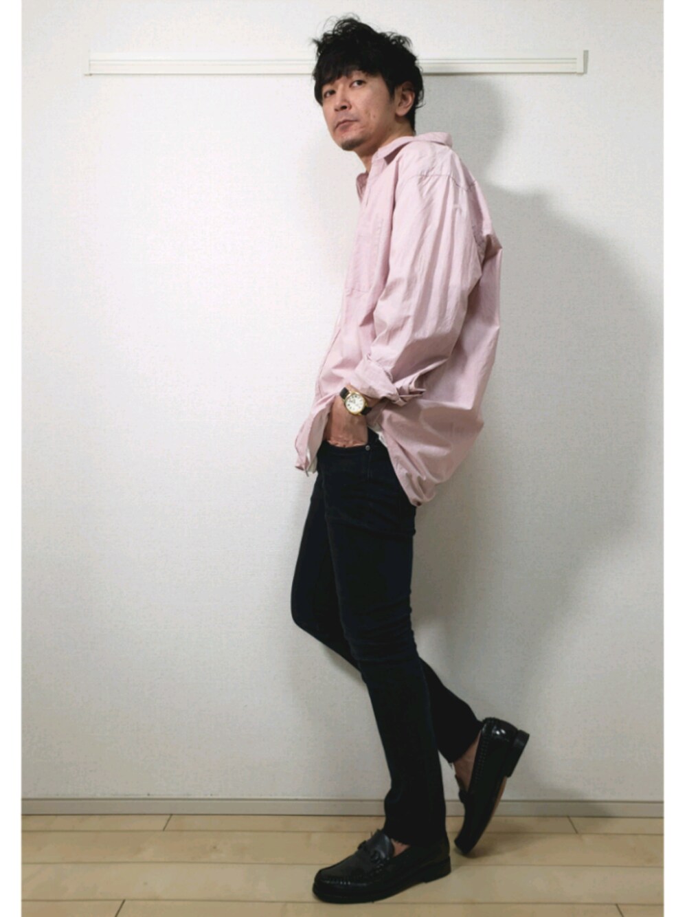 シャツを4XL、パンツは黒スキニーで。 メリハリをしっかりつけると色気が出ますね。 これくらいが自分の好きなユルさです。 沖縄は2月でもちょい暑いよ...(;´д`) 21℃。