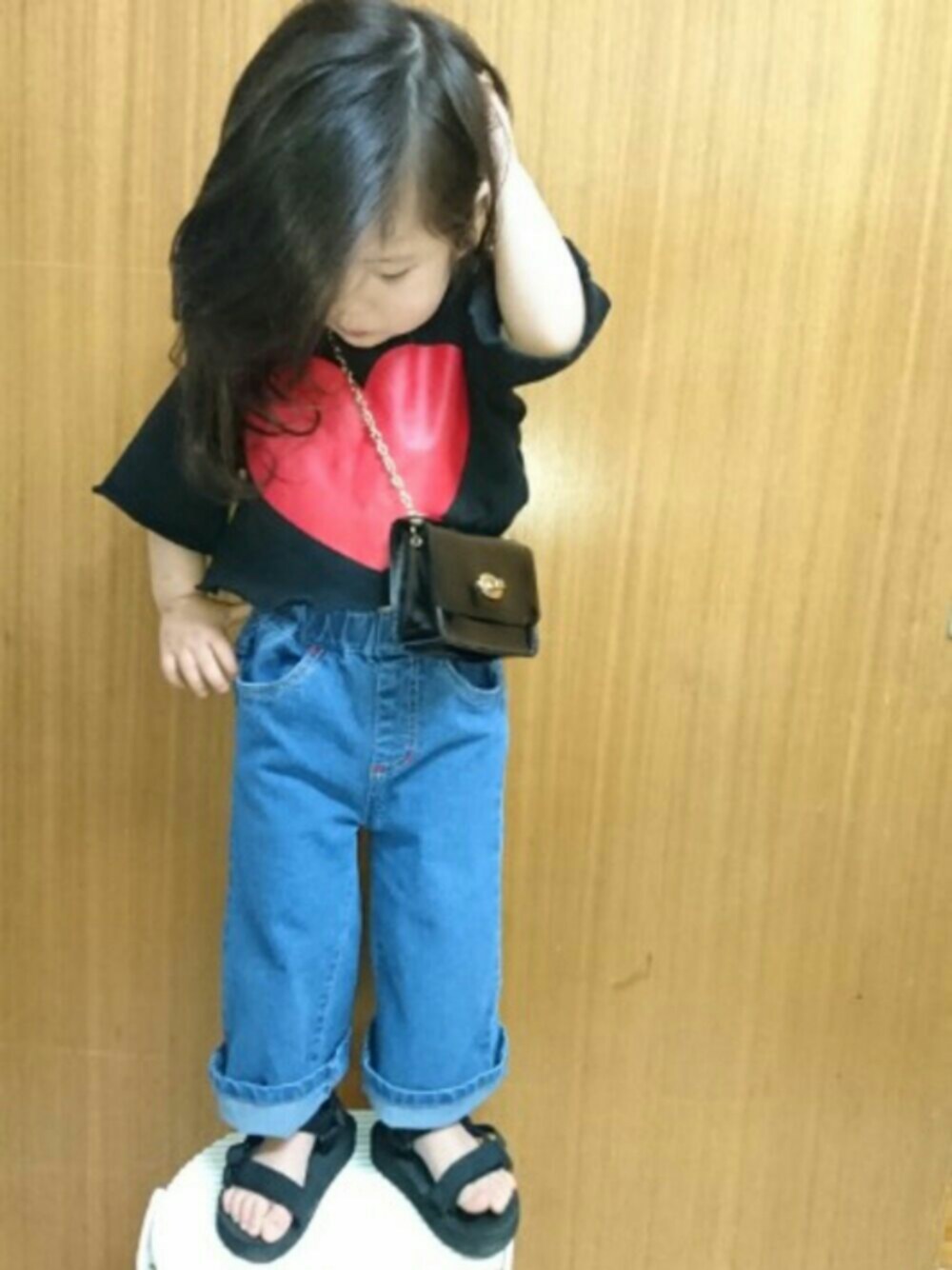 ハートが可愛いトップスは 去年の夏に買ったもの! ワイドパンツとスポサンを あわせてみたよ(〃ω〃)