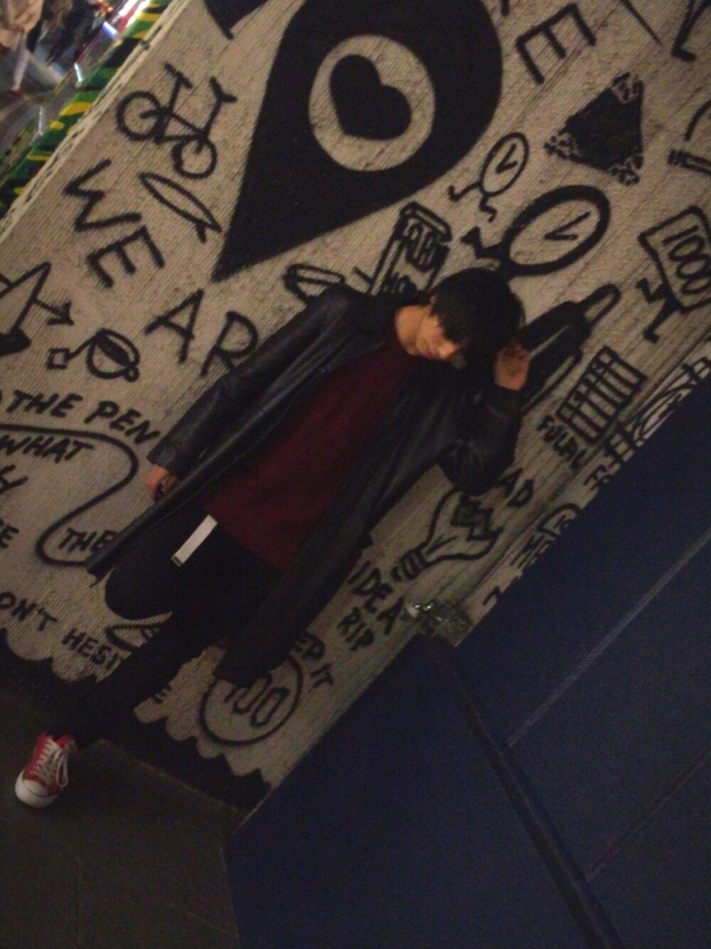 原宿で友達に撮ってもらいました✨ レザーコートは、北海道の古着屋で一目惚れした物です😍