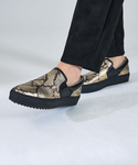 alfredoBANNISTER 【SPEAK FOR別注】 ダイヤモンド パイソン スニーカー 牛皮革(ステアー)に箔加工&ダイヤモンドパイソン柄のフィルムプリント施したオリジナルレザーを使用。 上品さと美しさの両面が楽しめます。 シャークソールの程よいボリュームも◎