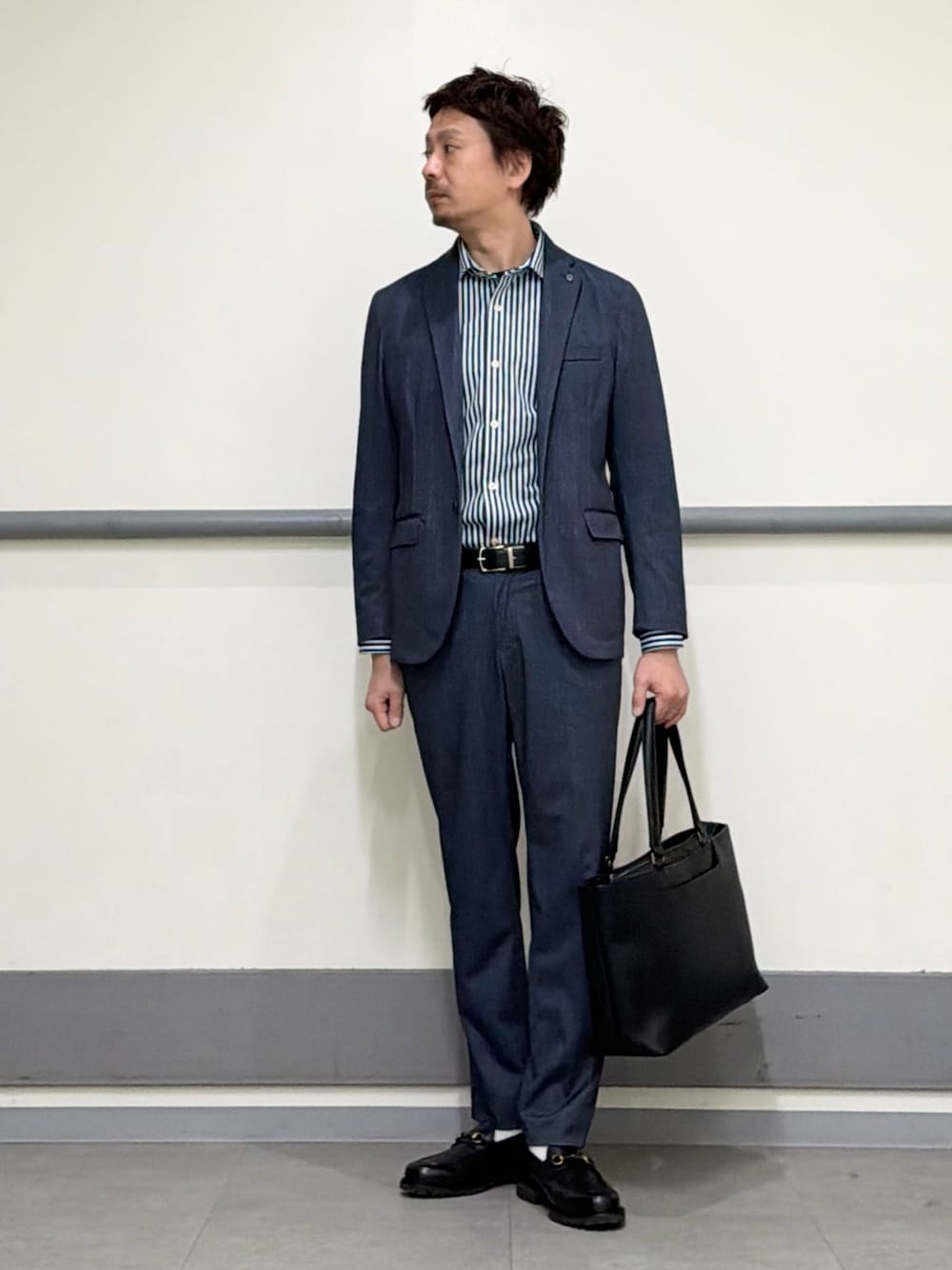 alfredoBANNISTER 軽量ソールビットローファーを使ったコーディネート 着用サイズ 43 非常に軽くてびっくりする感覚を覚えます。 見た目はキレイなローファーながらも ソールがカジュアルにも使いやすいデザイン。 程よい程度のボリュームが、セットアップスタイルにも合わせやすくて◎
