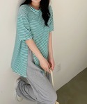 さらっとした履き心地抜群のパンツに、深くスリットが入ったボーダーTシャツを合わせたスタイル☆