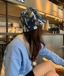 omimimiのハット「ペイントデニムバケットハット【サイズ調節可能】」を使ったコーディネート