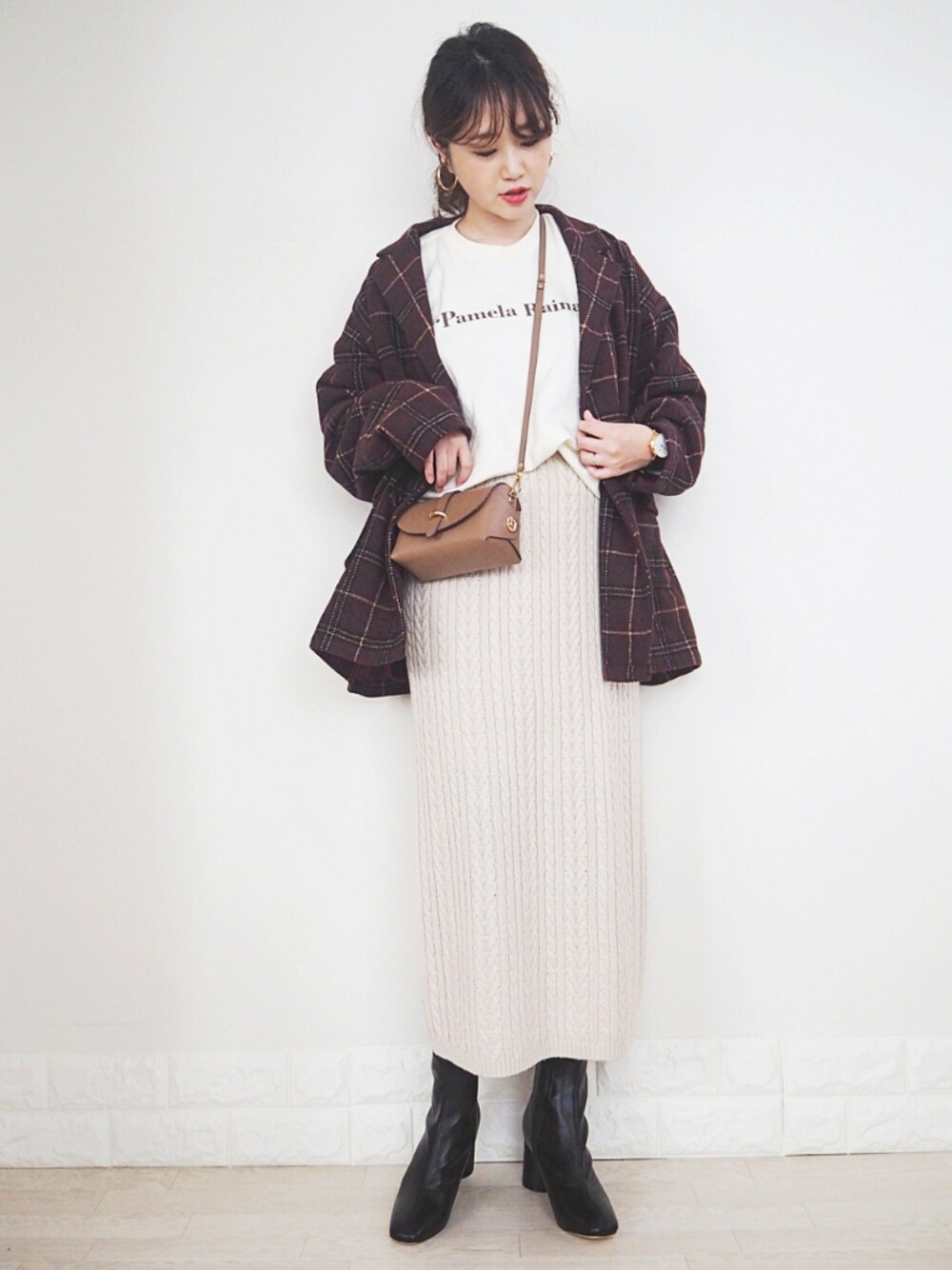 pairpairさんのチェックジャケット♡ こちらはチェック柄スカート風パンツと セットアップで着れちゃいます! 今回はチェックジャケットに guのケーブルニットスカートを 合わせました! ブラウンはレトロな色合いが素敵です❣ CLEAさんのレタードBIGスウェット♡ レタードロゴがポイントになるのと ゆるっとしたスウェットが可愛すぎる🖤 みていただき、ありがとうございます♡