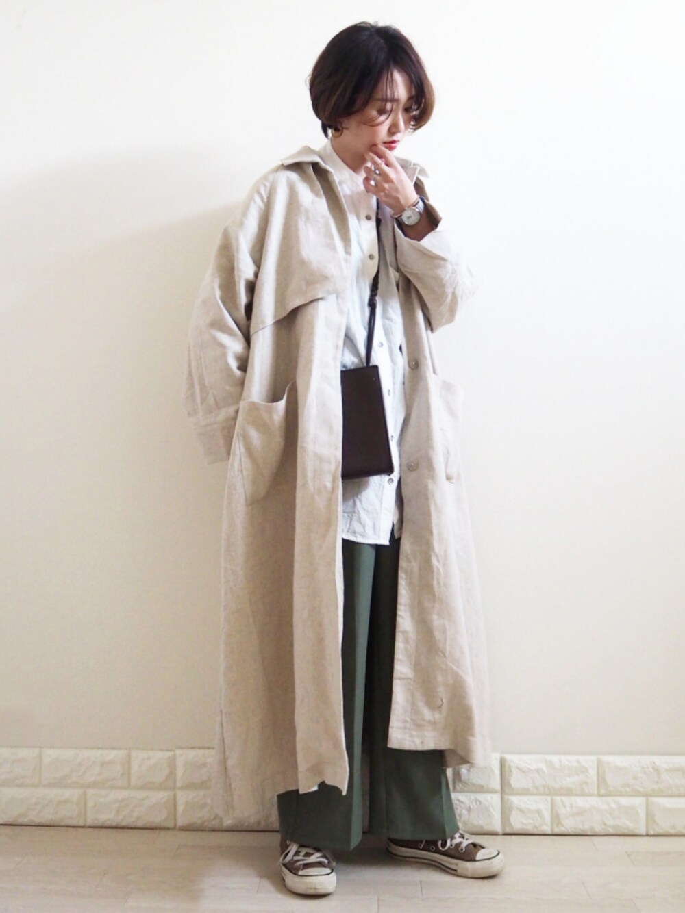 いつもいいね、お気に入り、 フォローしていただき、 ありがとうございます♡ とっても嬉しいです! −−−−−−−−−−−−−−−−−−−−−−−−−−−−−− Instagram→omi08wear こちらに投稿していないコーデや 日常を更新していますので 良ければ是非インスタも覗きにきて下さい♡ −−−−−−−−−−−−−−−−−−−−−−−−−−−−−− お気に入りづくし♡ select mocaのセンターラインパンツは 春カラーなグリーン💚 センターラインの美シルエットが 脚長効果に! 適度な透け感のバンドカラーシャツと合わせてラフコーデ♡ KBF のコートは綿麻のコートなので 肌触りが気持ちいいし着心地抜群♡ ボリューム感もあってゆるっと 着れて可愛いです! ライトベージュは着回したくさんできるし、トップスやボトムスにライトグリーンやピンクなどの淡色とも合って◎