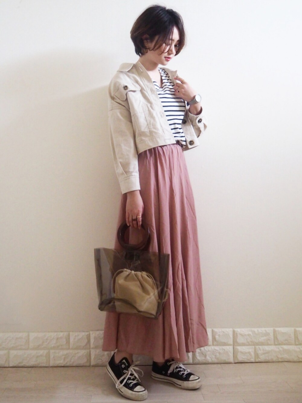omi*のブルゾン「綿麻ライトショートブルゾン」を使ったコーディネート
