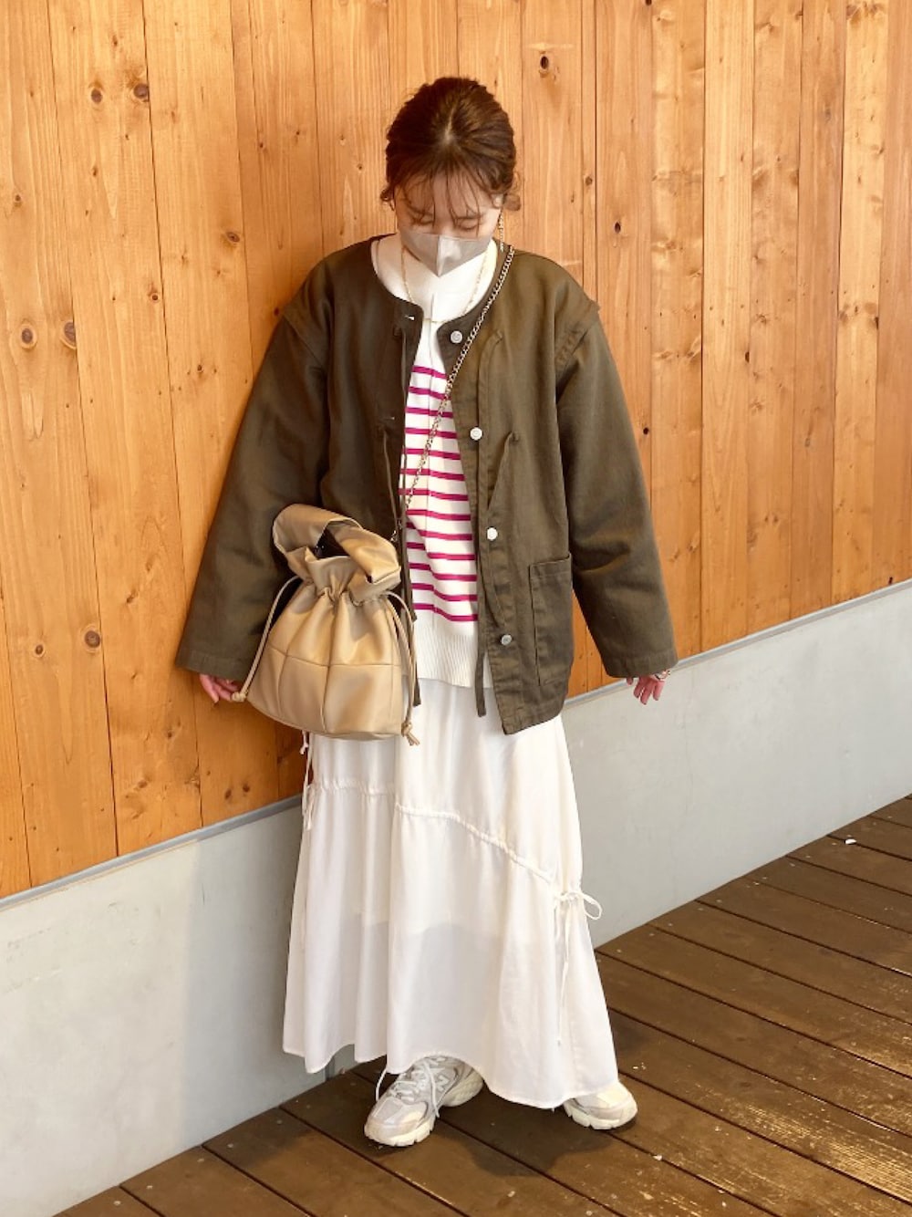 いつもみていただき、 ありがとうございます♡ w closetの もちっとした肌触りで着心地抜群な 2wayカーディガン♡ 春らしいピンクボーダーが コーデの差し色になって可愛いです🥰 こちらのカーディガンは 本日1,000円OFFクーポンDAY♡ カーキのデニムジャケットとも 相性抜群♡ ジャケットとバッグとスカートは しまむら(Laumeomi..)です♪ 早く暖かくならないかなぁと 春が待ち遠しいです☺️