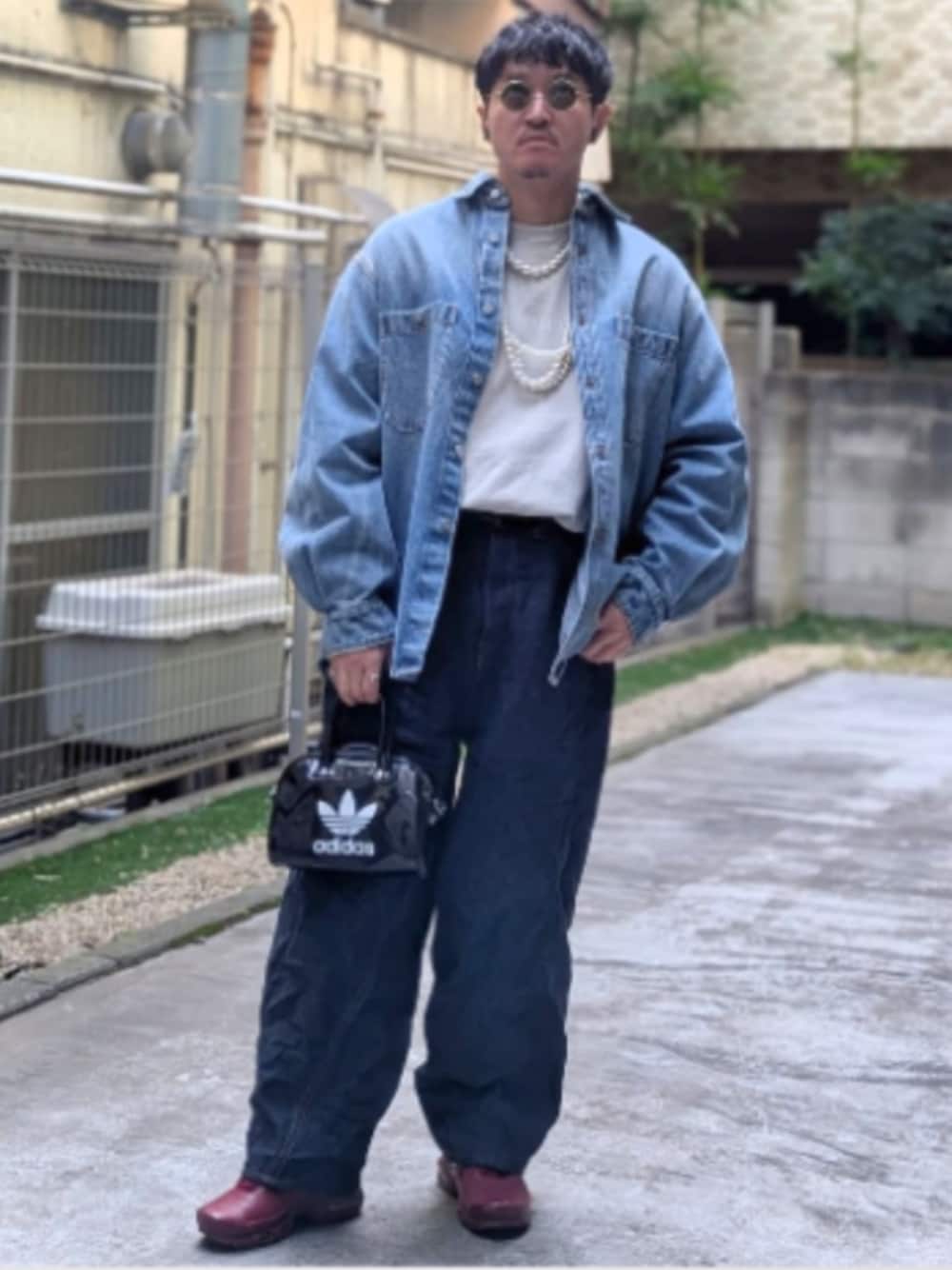 blessSupremeの多連パールネックレスを軸にコーディネート。 キレイになりすぎないように、スウェットやデニムで外して♪
