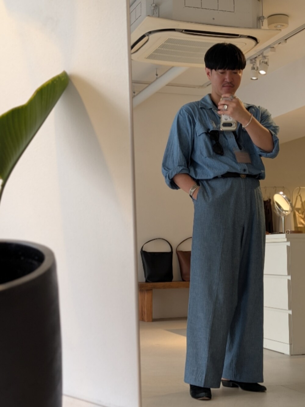 使用頻度、洗濯頻度が違うため色味が違うけどセットアップ(笑) 軽いデニム生地なので夏でも○ バラバラでも使い勝手がいいやつら!
