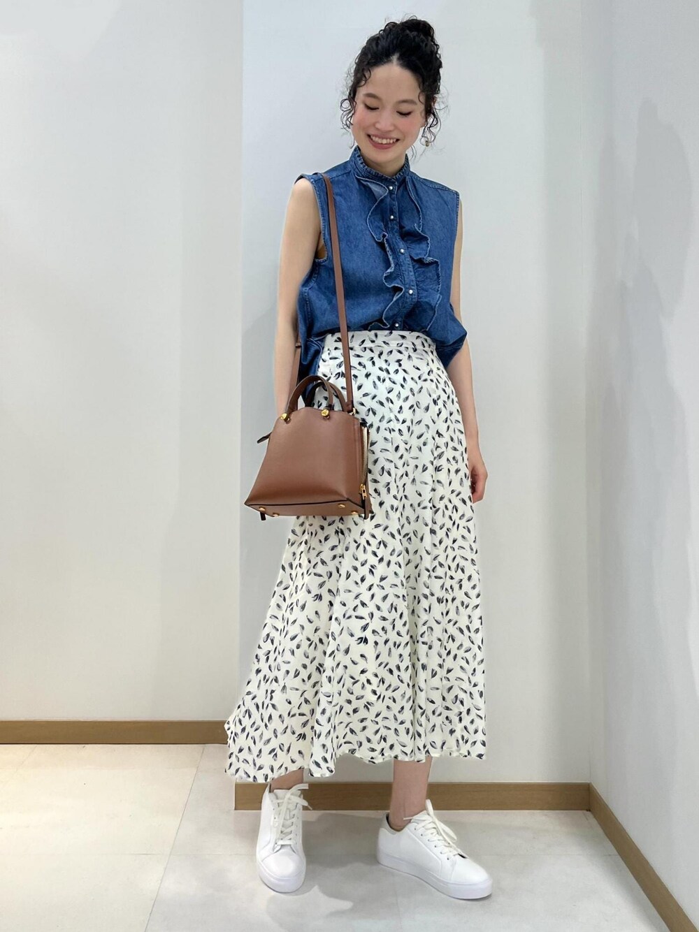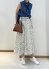 上品な柄のスカートに首元とパールボタンが可愛らしいデニムのブラウスで大人の方にもおすすめのコーディネート。 普段デニム素材を着ない方にもおすすめです。 ※店頭及び野外での撮影画像は、 光の当たり具合で色味が異なって見える場合がございます。 商品の色味はスタジオ撮影の画像をご参照ください。 LINEでロペスタッフに相談は【友だち追加】をタップをして下さい <a href="https://lin.ee/oQtrrAP" style="background:url(https://scdn.line-apps.com/n/line_add_friends/btn/ja.png); background-size: contain; display: block;width: 116px;height: 36px; margin:.5em 0;"></a>