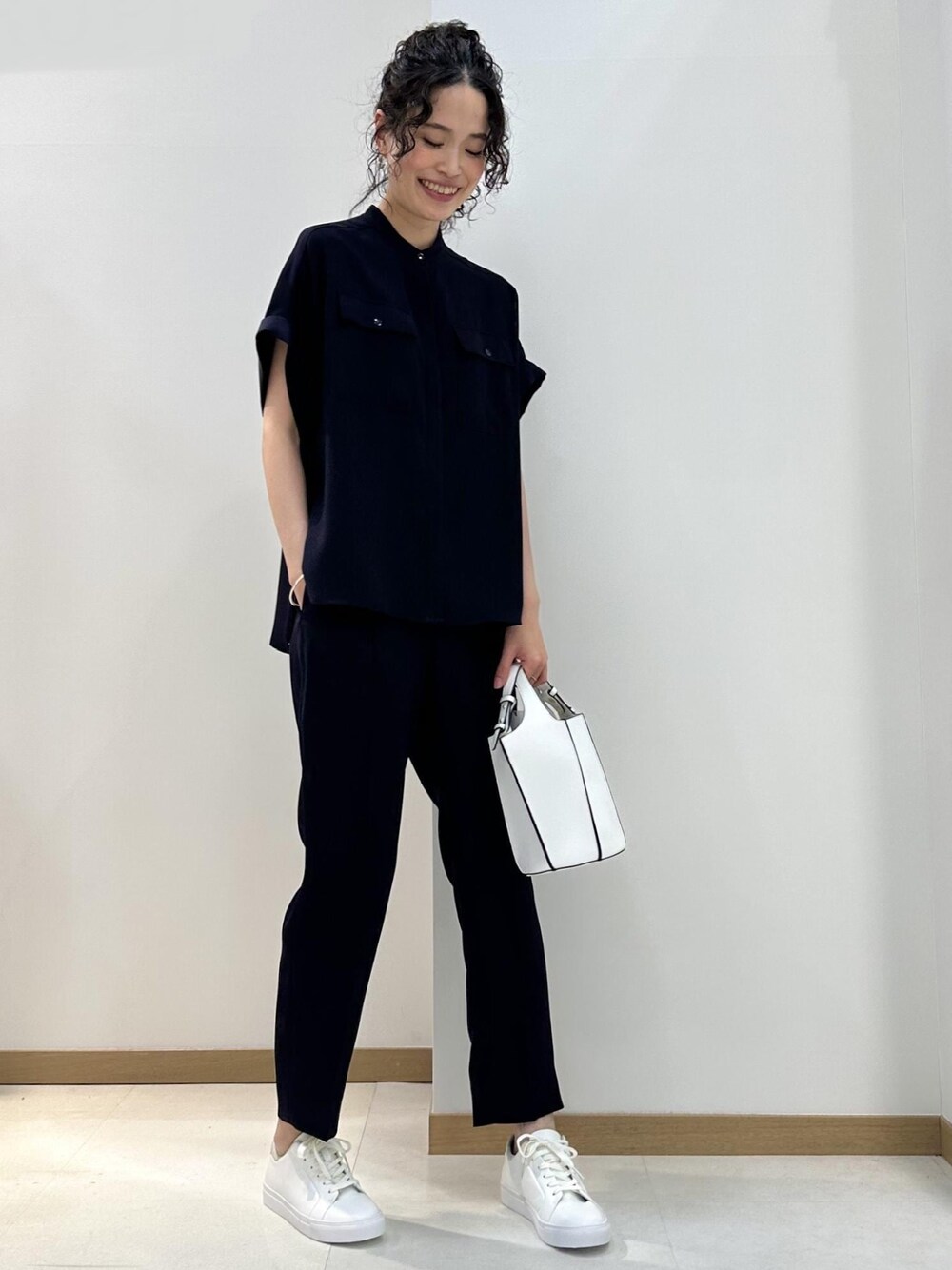 ネイビーのセットアップをラフに気取らないオフの日コーディネート。 コーディネートに軽さを出すために小物はホワイト、足元はスニーカーで外したのがポイントです。 小物を変えるだけで、オンオフ使い分けられるセットアップおすすめです。 ※店頭及び野外での撮影画像は、 光の当たり具合で色味が異なって見える場合がございます。 商品の色味はスタジオ撮影の画像をご参照ください。 LINEでロペスタッフに相談は【友だち追加】をタップをして下さい <a href="https://lin.ee/oQtrrAP" style="background:url(https://scdn.line-apps.com/n/line_add_friends/btn/ja.png); background-size: contain; display: block;width: 116px;height: 36px; margin:.5em 0;"></a>