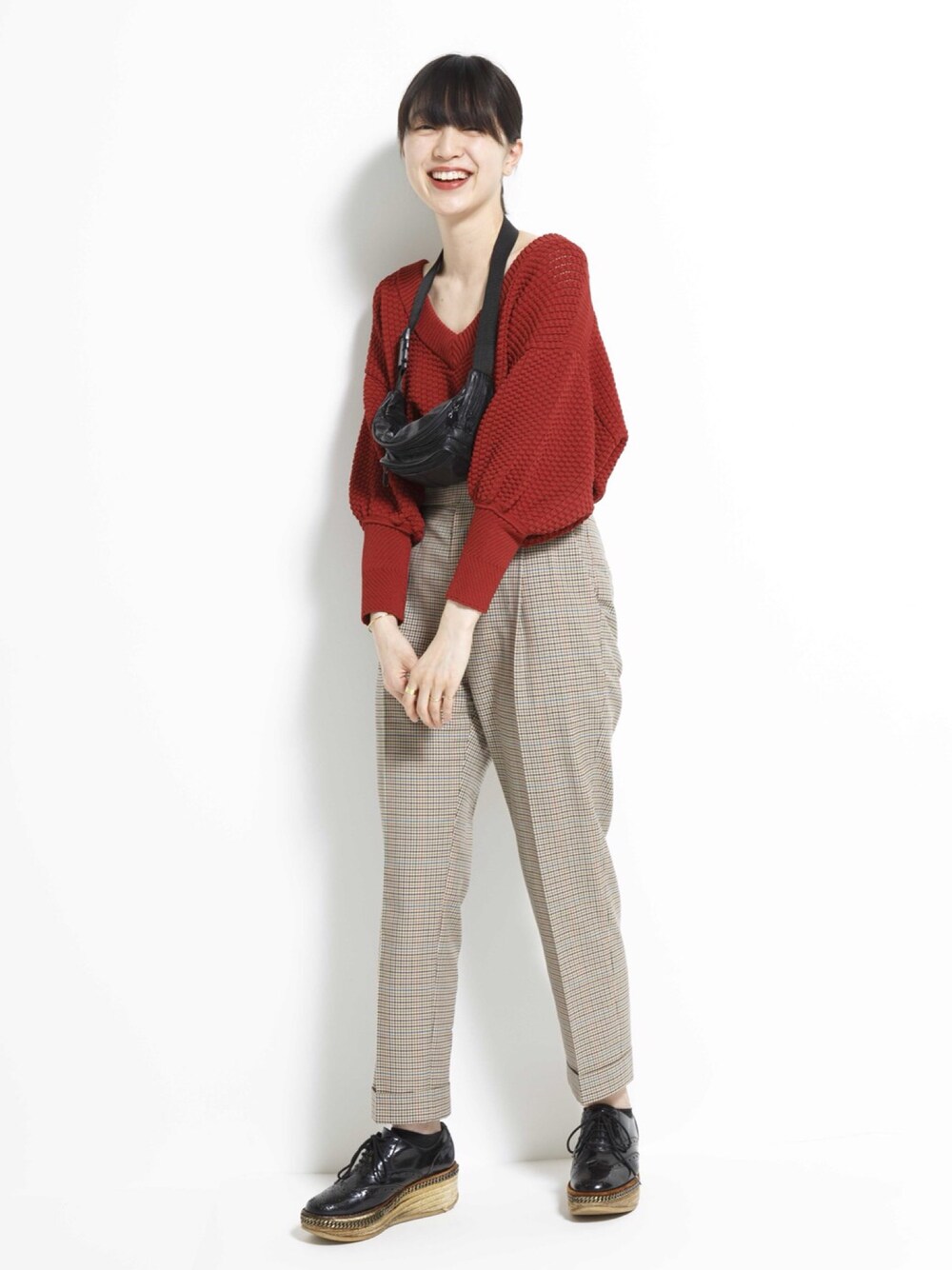 小谷実由のデニムパンツ「ワンタックチェックパンツ」を使ったコーディネート