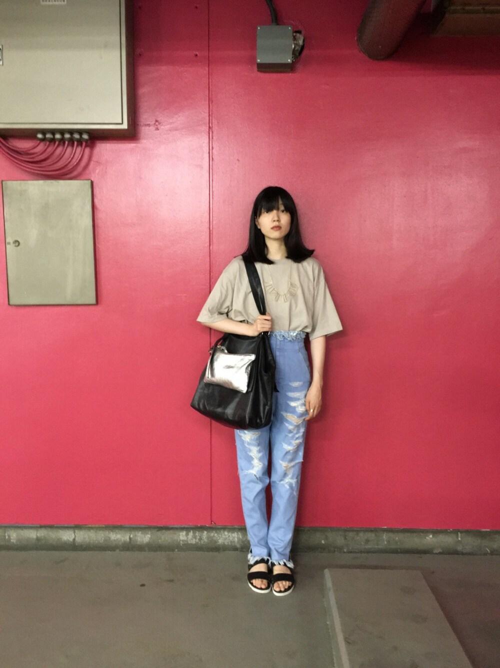 小谷実由のトートバッグを使ったコーディネート