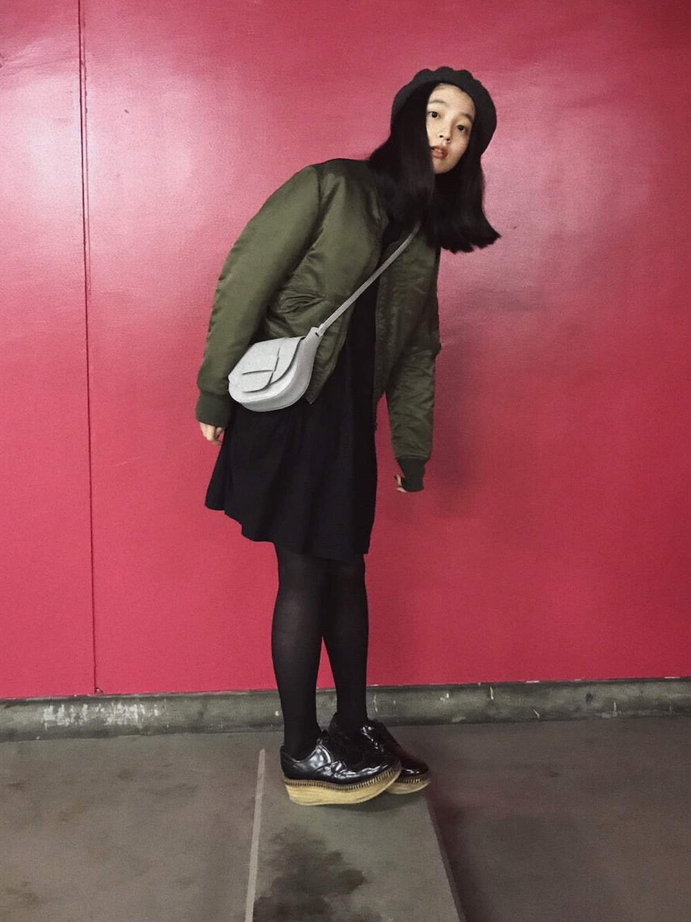 小谷実由のブルゾン「mame 刺繍MA-1」を使ったコーディネート