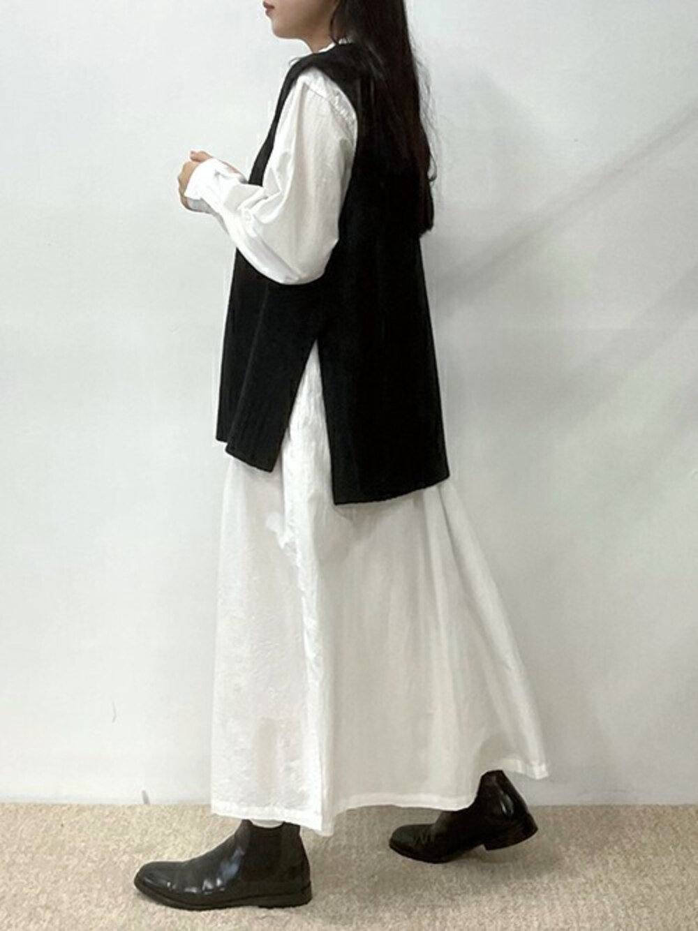 staff : 155cm 後ろ姿にもポイントがあるシャツワンピース。 コットン100%のナチュラルなシャツワンピースはゆったりとした着心地と優しい生地感がうれしい一枚✨ 柔らかで涼やかなコットン地はインナーや着方次第で長く楽しめるアイテムで ニットベストやタートルネック合わせで秋冬コーデを楽しんで♬