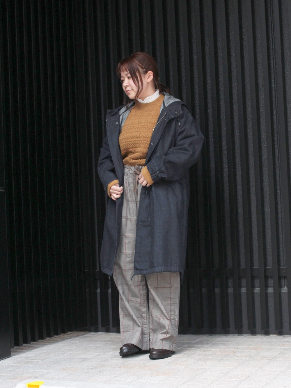 少しミリタリー感のあるモッズコートは、デニム素材ですが柔らかく女性らしいシルエットになっています。 冬のカジュアルスタイルにもってこいのアイテムです。