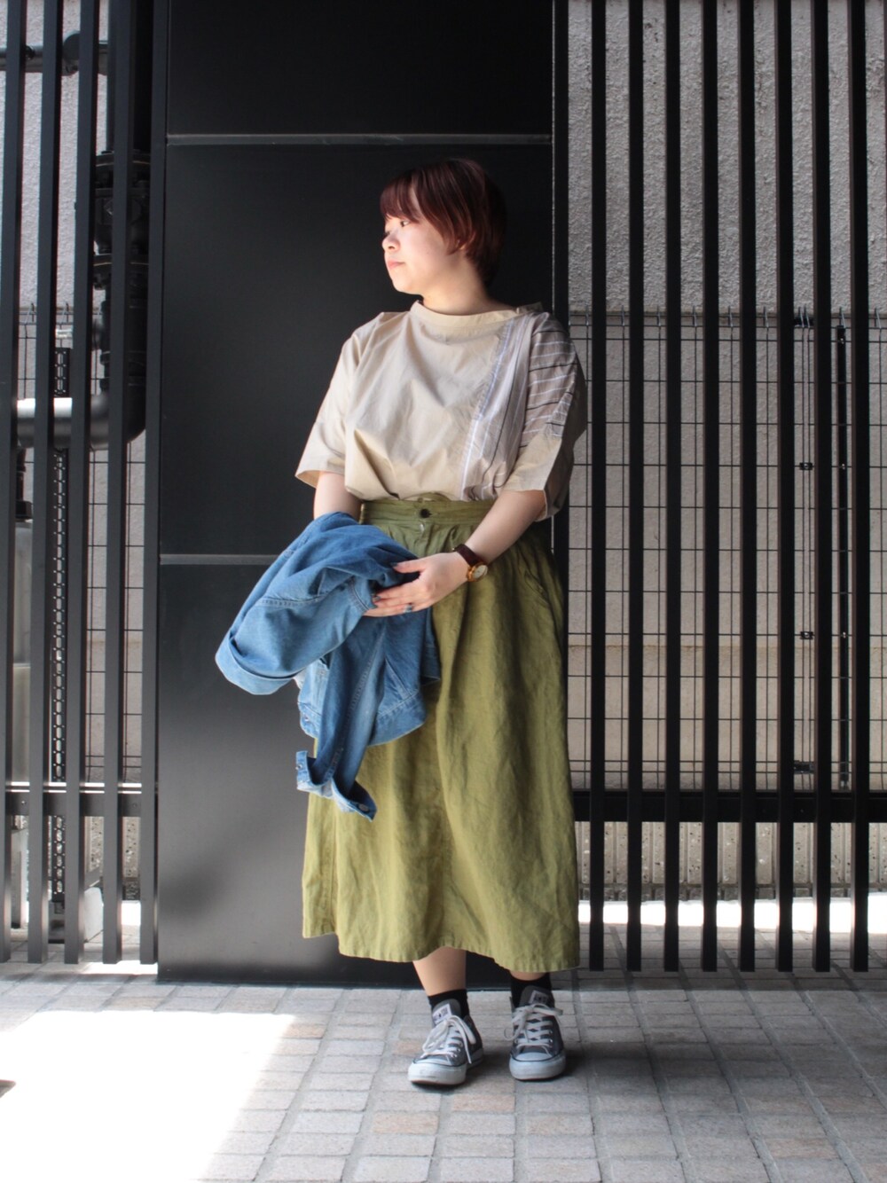 Domingo officeのスカート「[D.M.G / ディーエムジー] リネンキャンバス イージータックスカート」を使ったコーディネート
