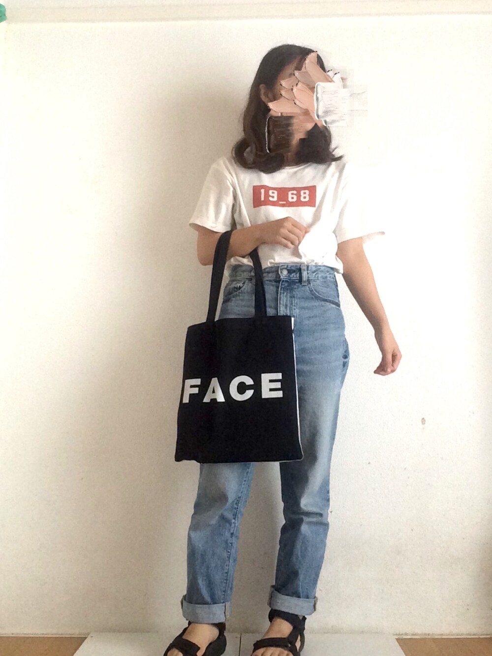 シンプル。 Tシャツは去年買ったやつ! 背中にあるロゴがお気に入りなんです〜