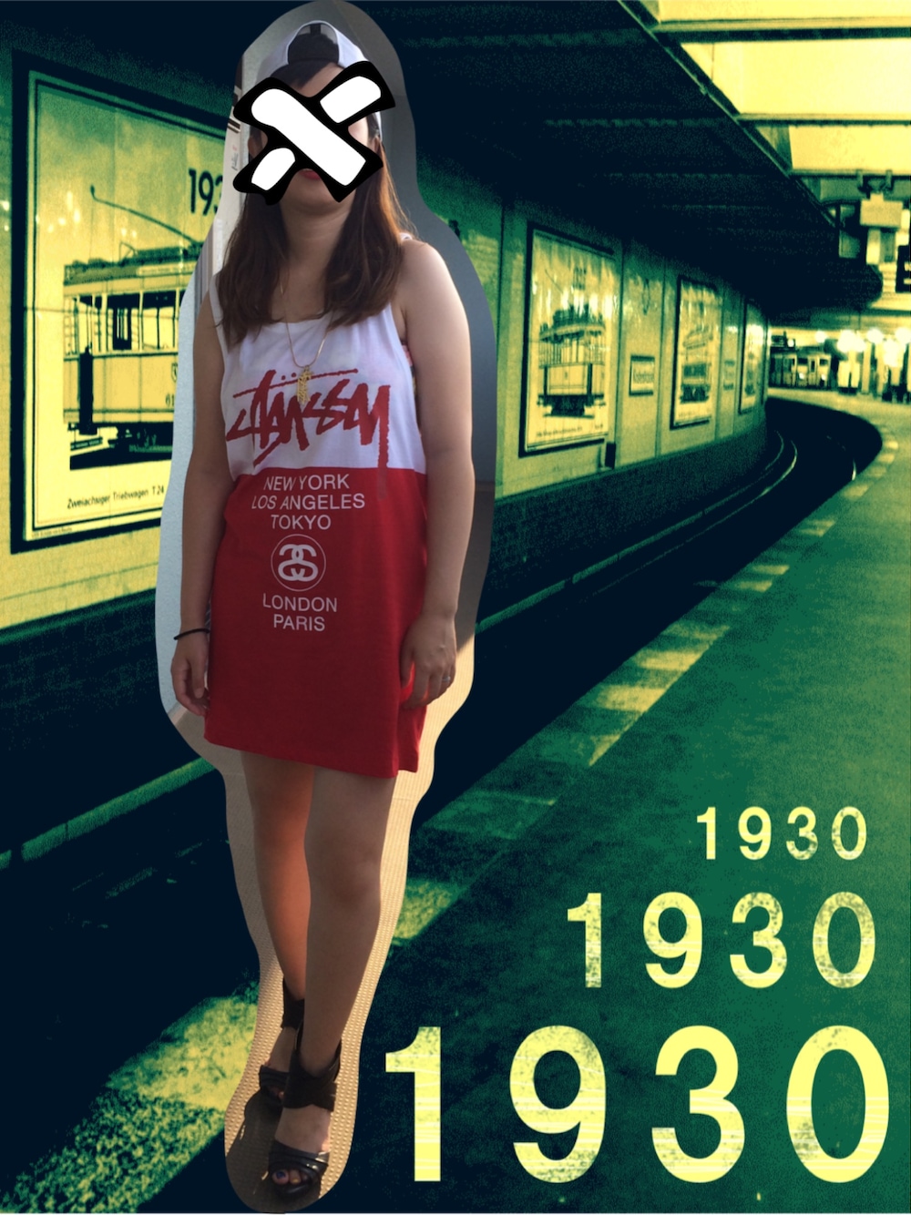 ヘビロテのSTUSSYタンク メンズだからワンピとして丁度良い👍